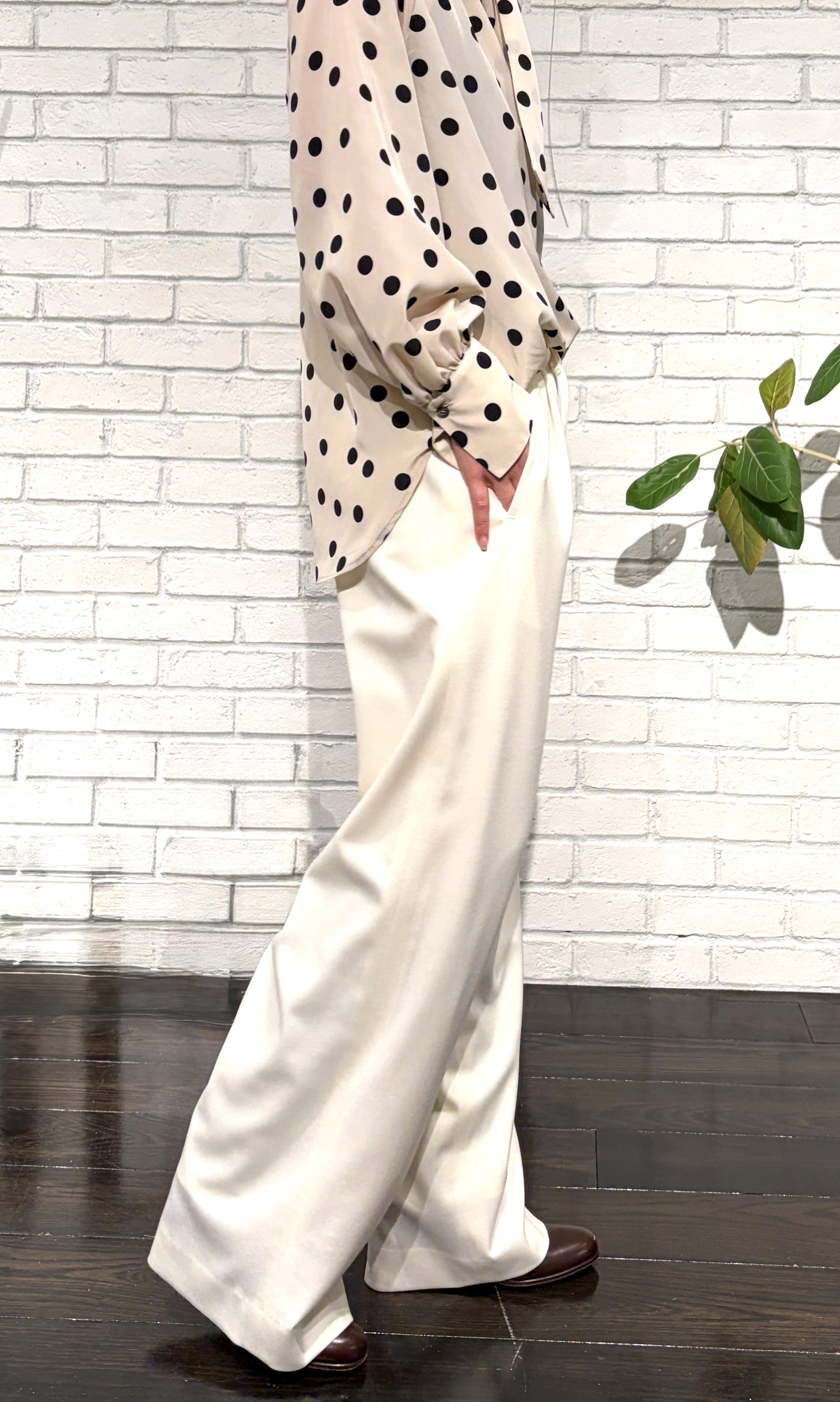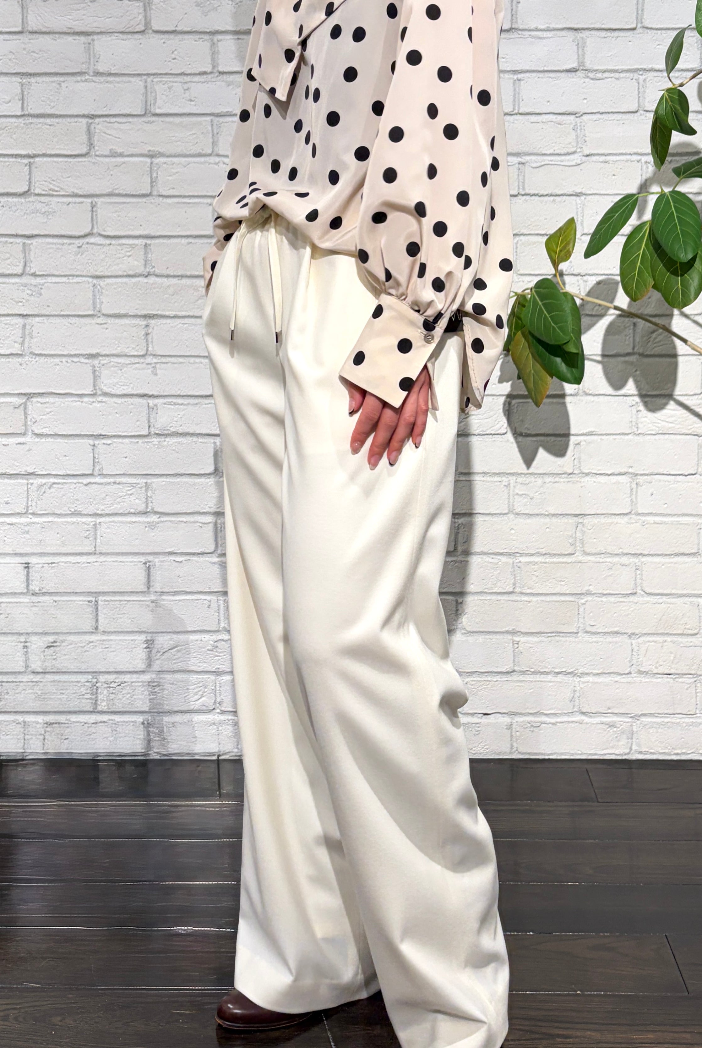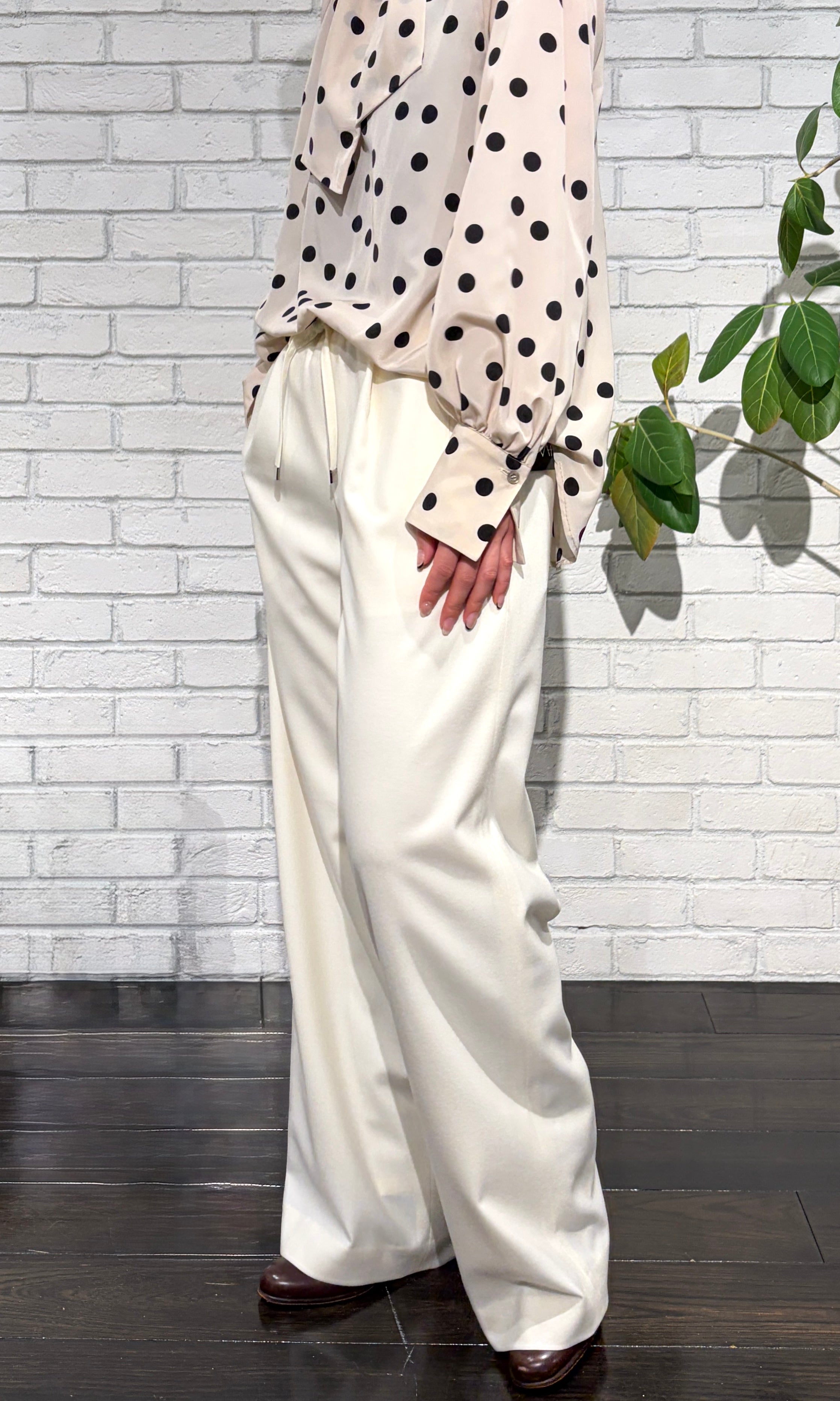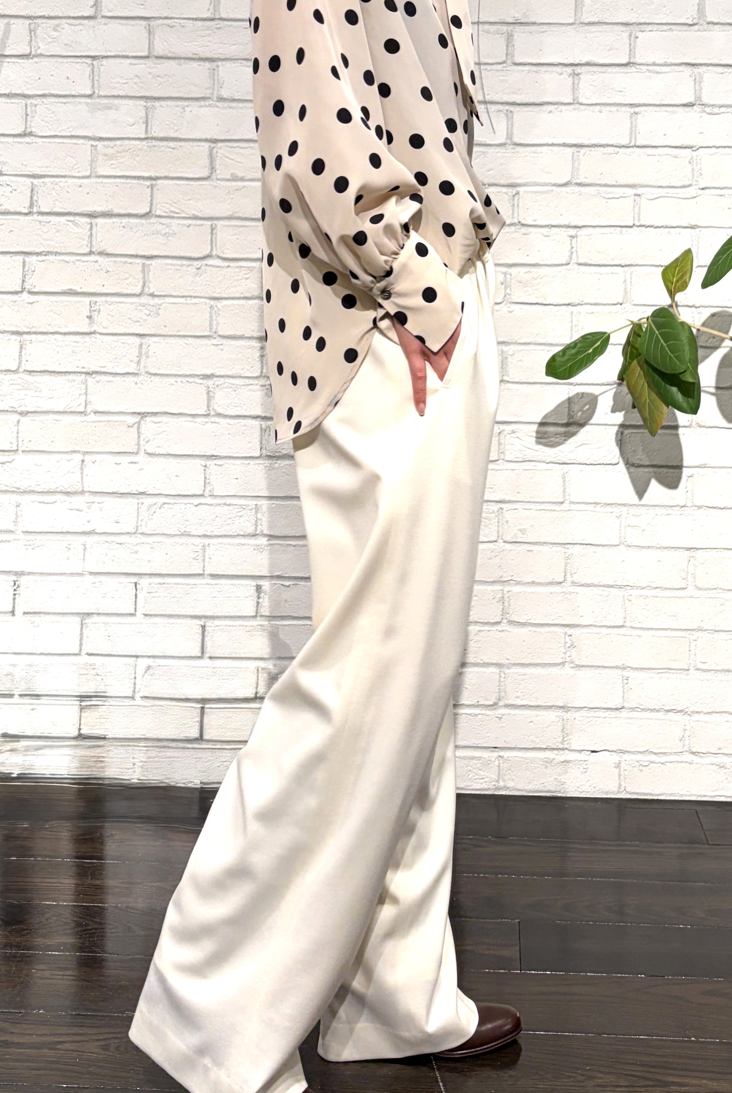 M・Filがその先駆者であるウェストゴムのパンツ、Easy Trousersは、着心地とフォルムの美しさを追求した引き算のクリエイション。計算された細部の仕立てにより、他とは一線を画す美しいシルエットは、細身クロップトタイプの他、バギーやガウチョタイプなど、シーズンにより様々に登場します。