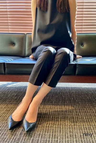 脚のラインが出ず、下着も透けにくいように工夫された「ボディシェル」と呼ばれる生地を使用したイージートラザーズ。 地厚でしっかりとしていながら、適度なストレッチ性を実現。また、防汚効果も高い所も魅力です。