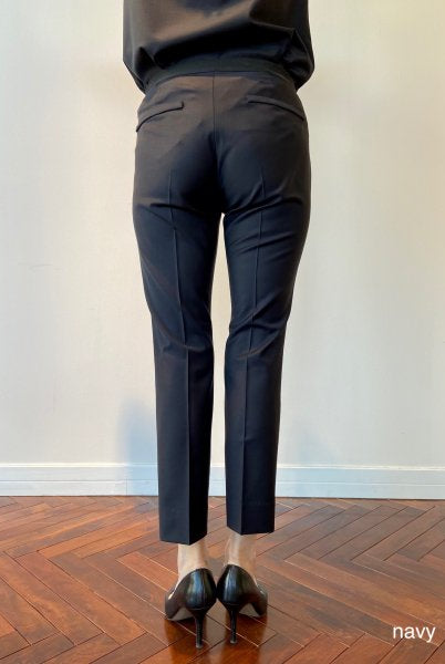 上品な見た目と穿き心地の良さを兼ね備えたブランドの定番素材を使用したイージートラウザーズ。ウールでありながら毛羽が少なく表面がとても滑らかです。良質のポリウレタン混により2WAYストレッチが効き、ウールとは思えない穿き心地を叶えてくれます。