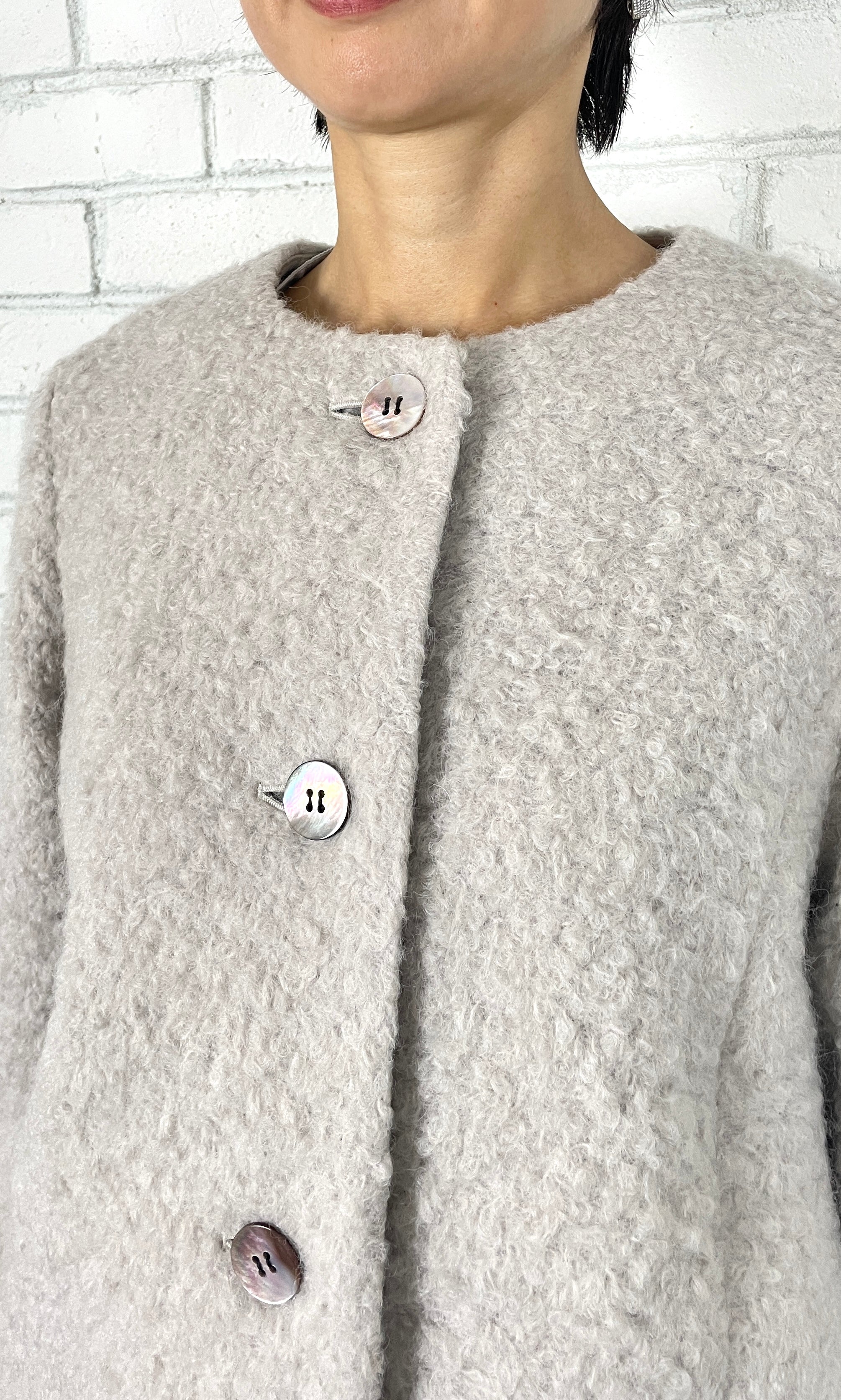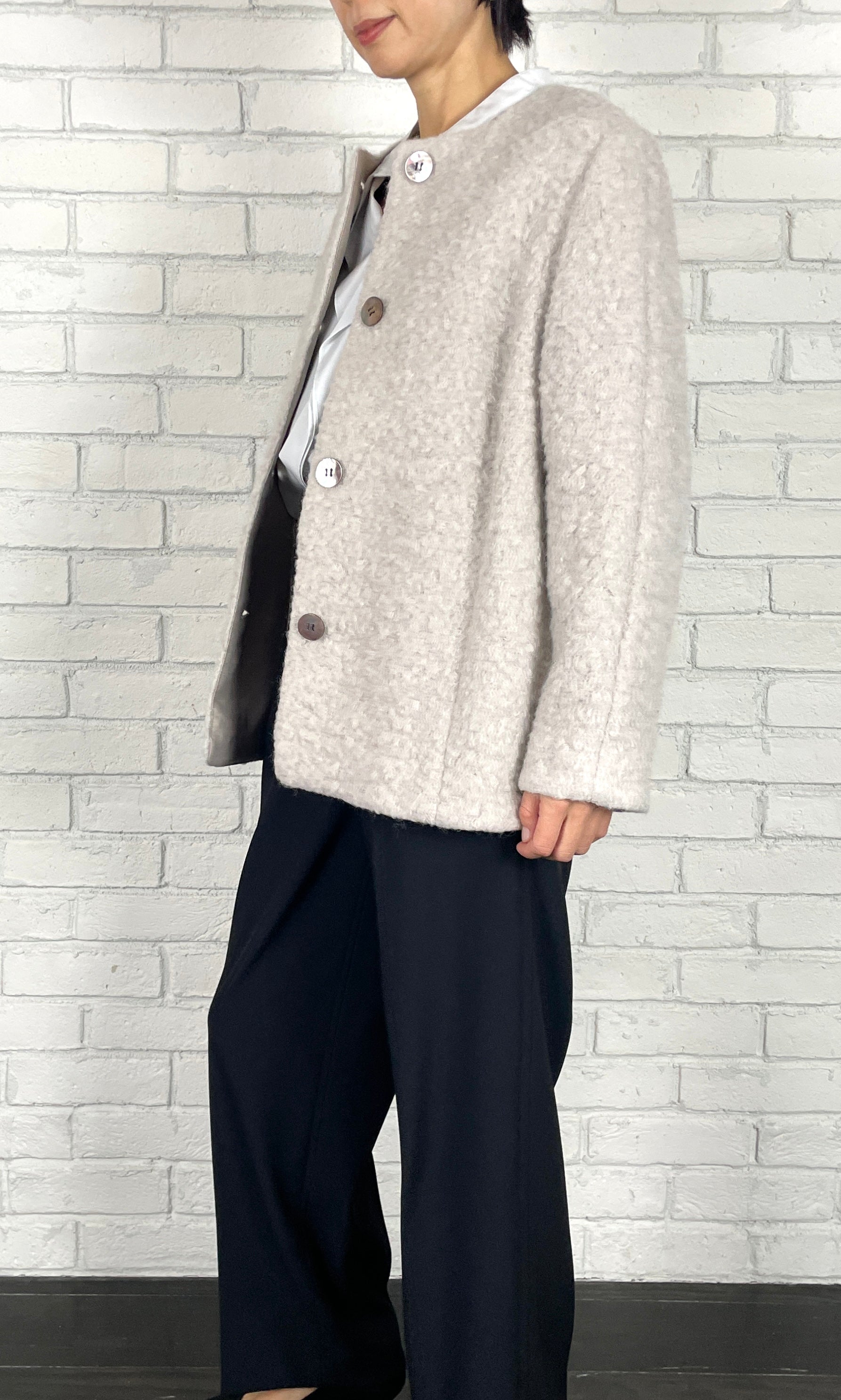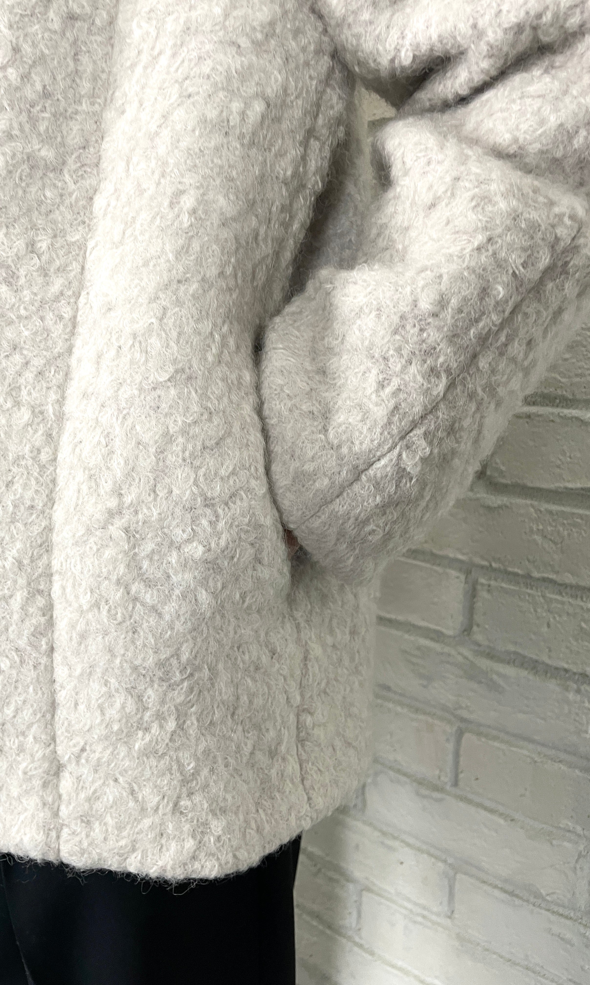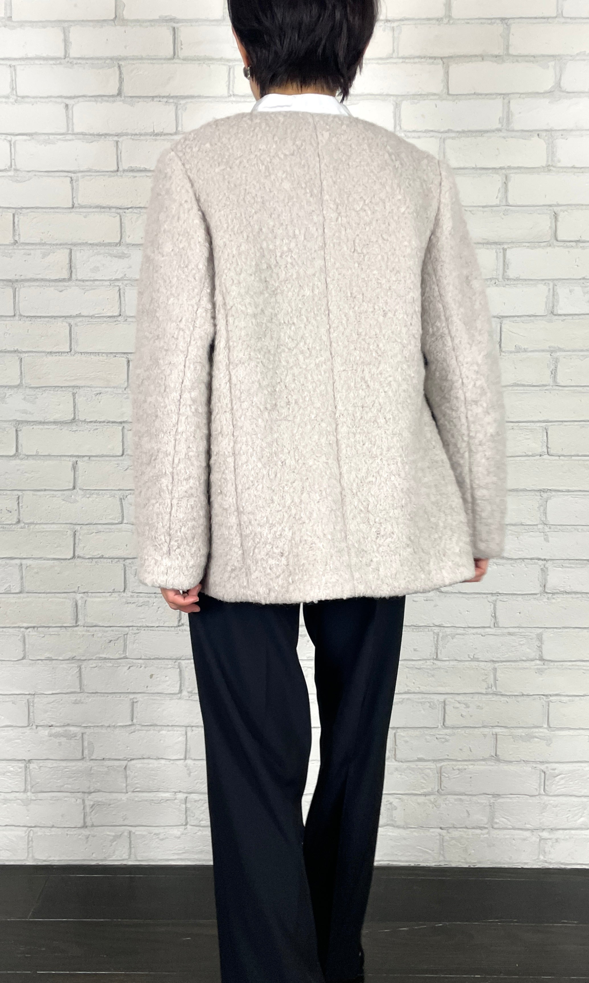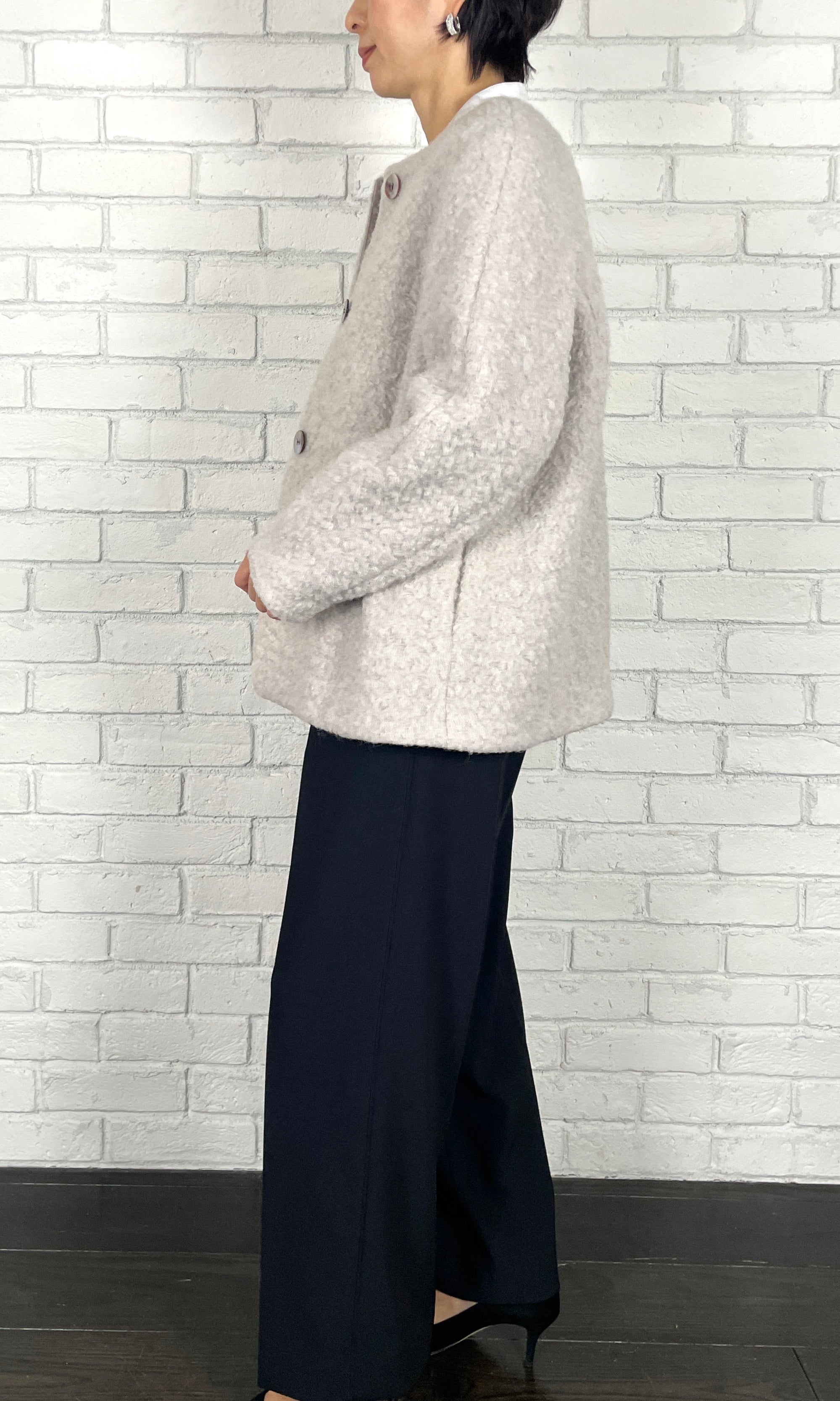 くるくるとしたループ状の生地がかわいらしいショートコート。