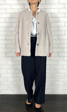 今らしいショート丈で、ジャケットのように軽く羽織れる便利さがあり、コーディネートに一枚取り入れていただくだけで華やかさを添えてくれます。