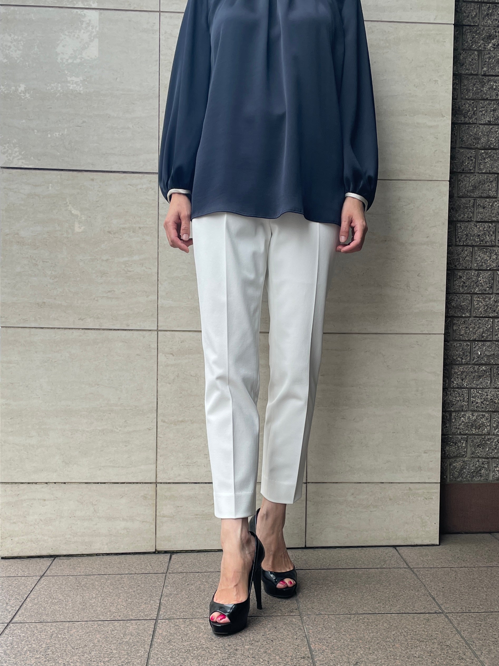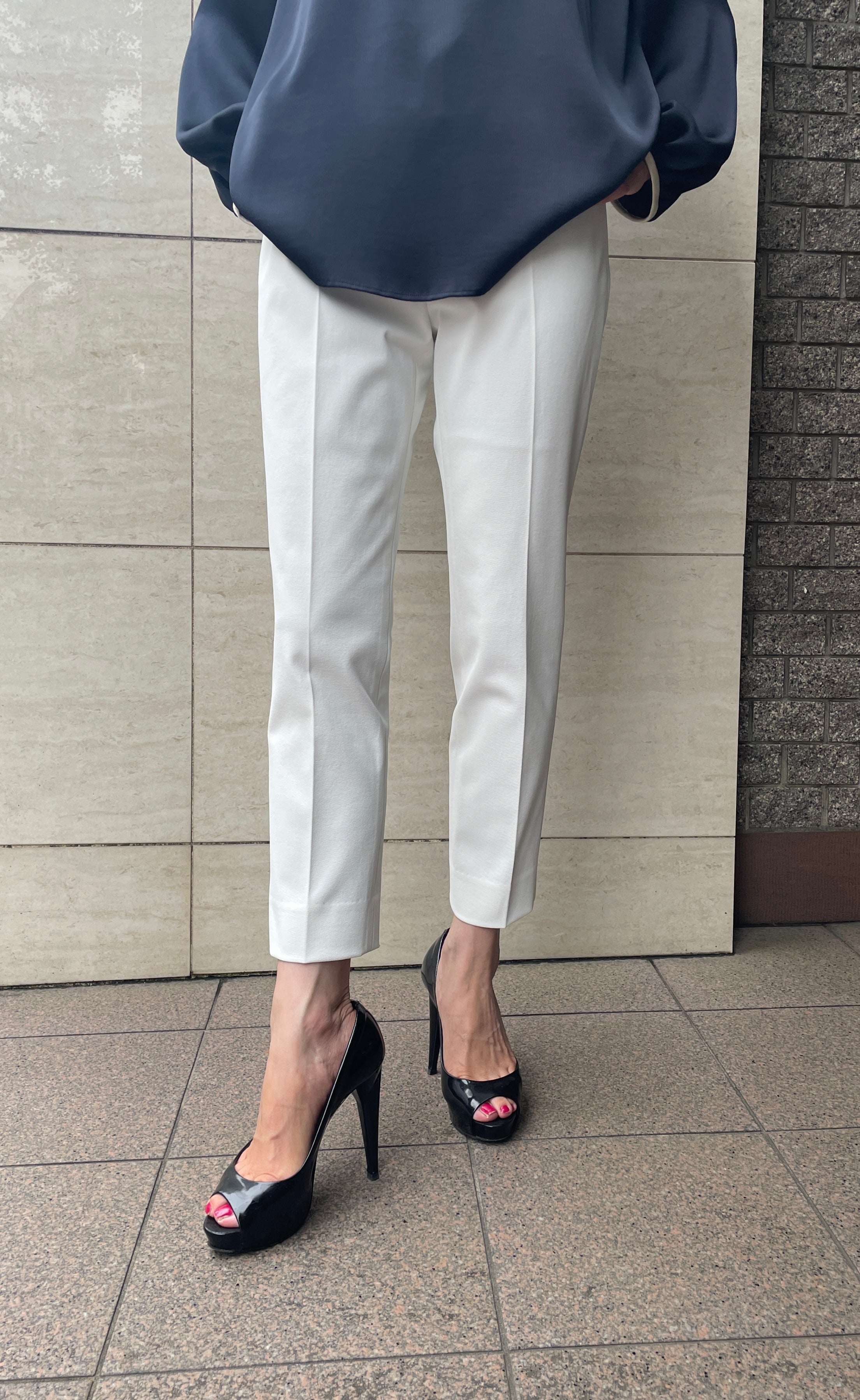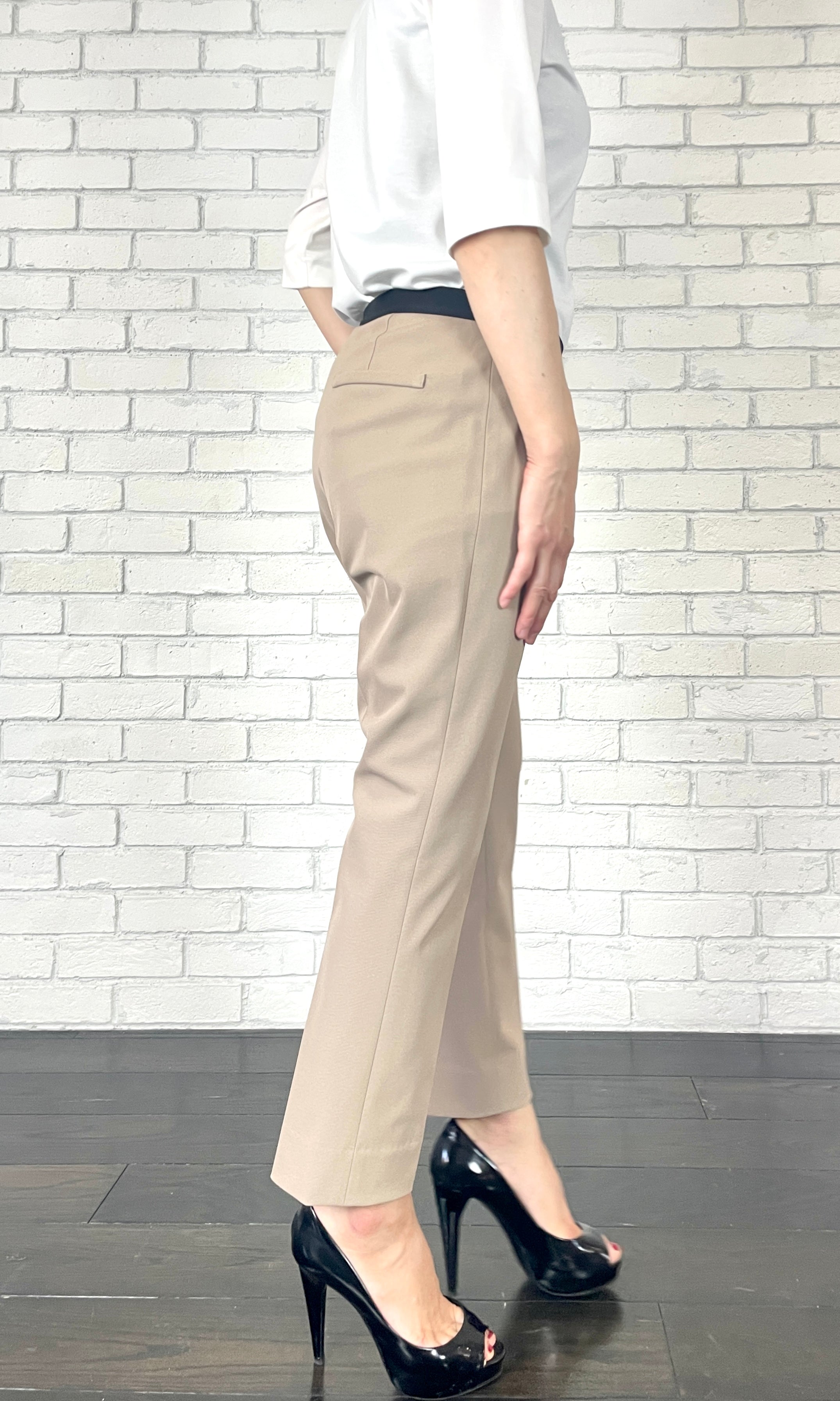 シルエットはM・filの定番コンフォートです。すっきりとしたスティックパンツは脚をまっすぐ見せてくれる美脚パンツとして人気のモデル。 多くのお店で「試着後の購入率100%!」と言われるモデルです。