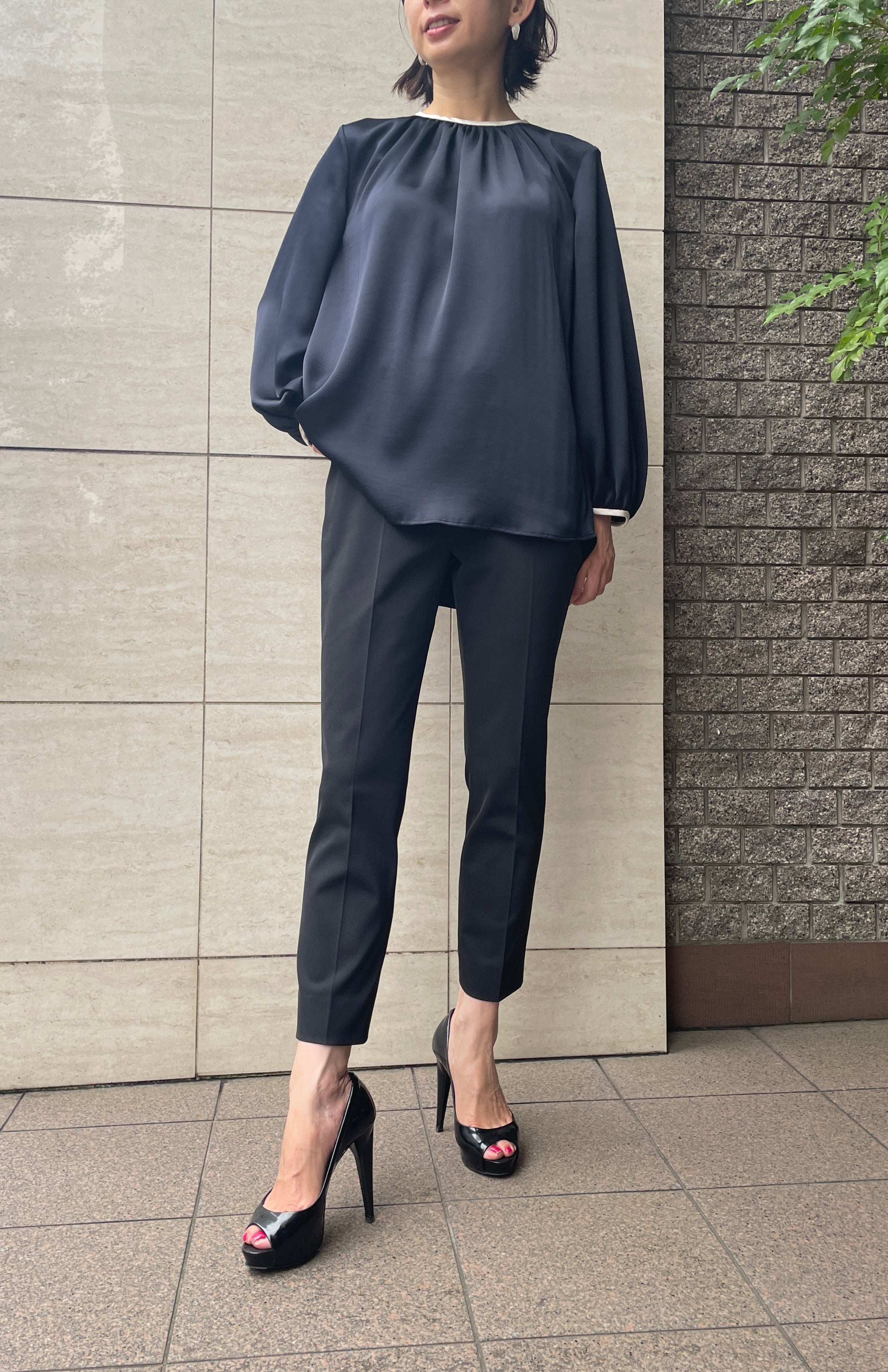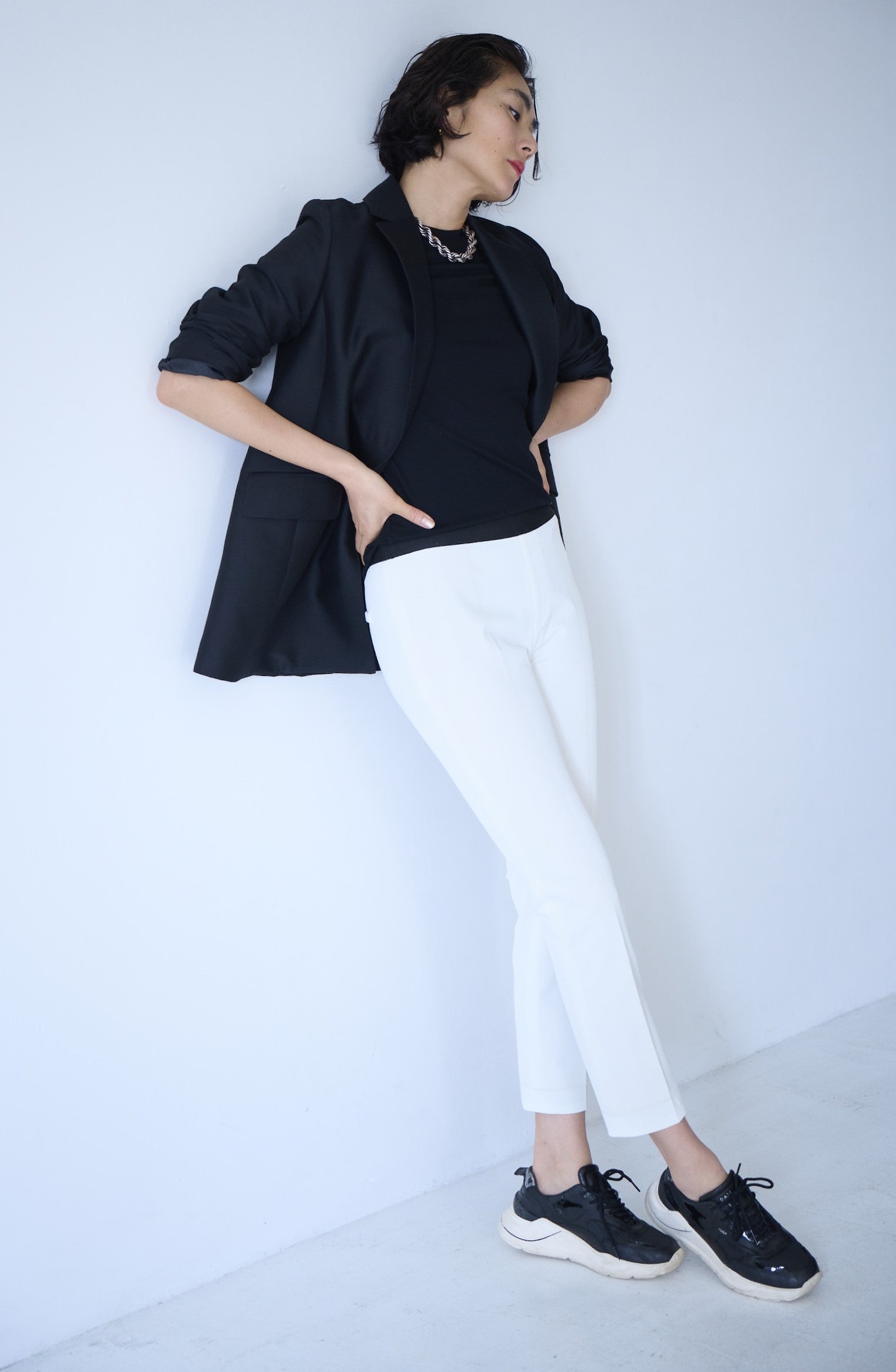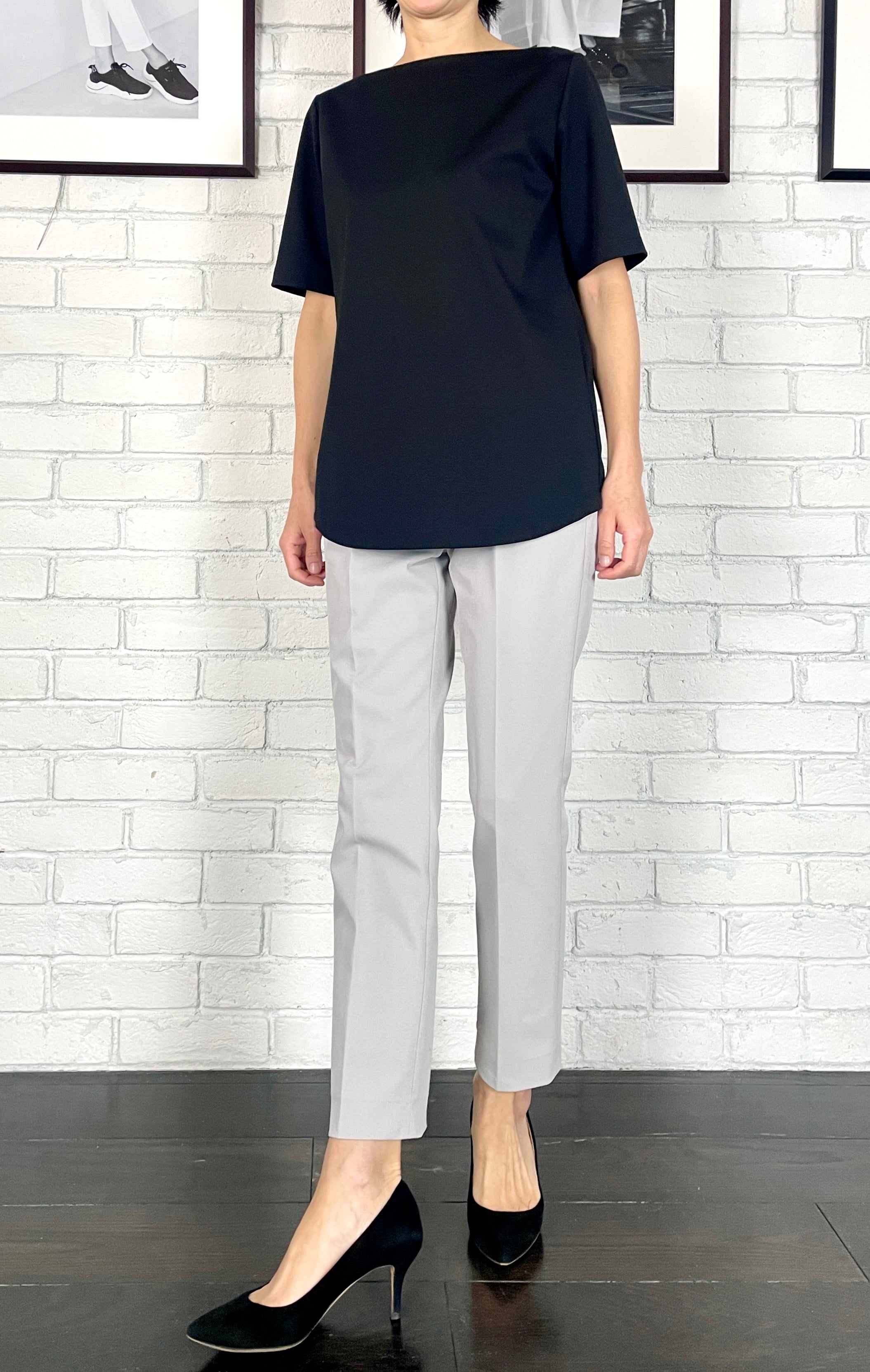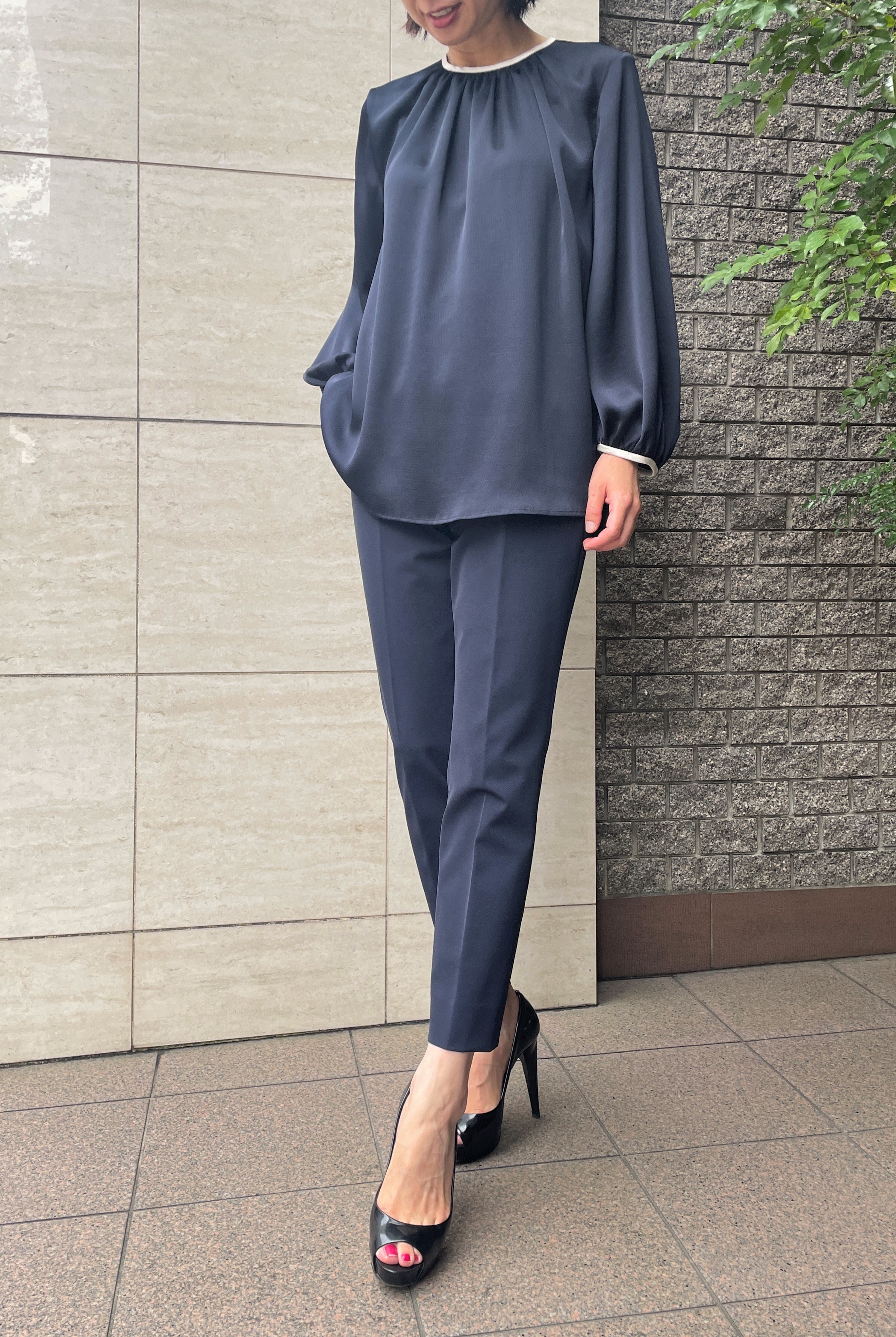 シルエットはM・filの定番コンフォートです。すっきりとしたスティックパンツは脚をまっすぐ見せてくれる美脚パンツとして人気のモデル。 多くのお店で「試着後の購入率100%!」と言われるモデルです。