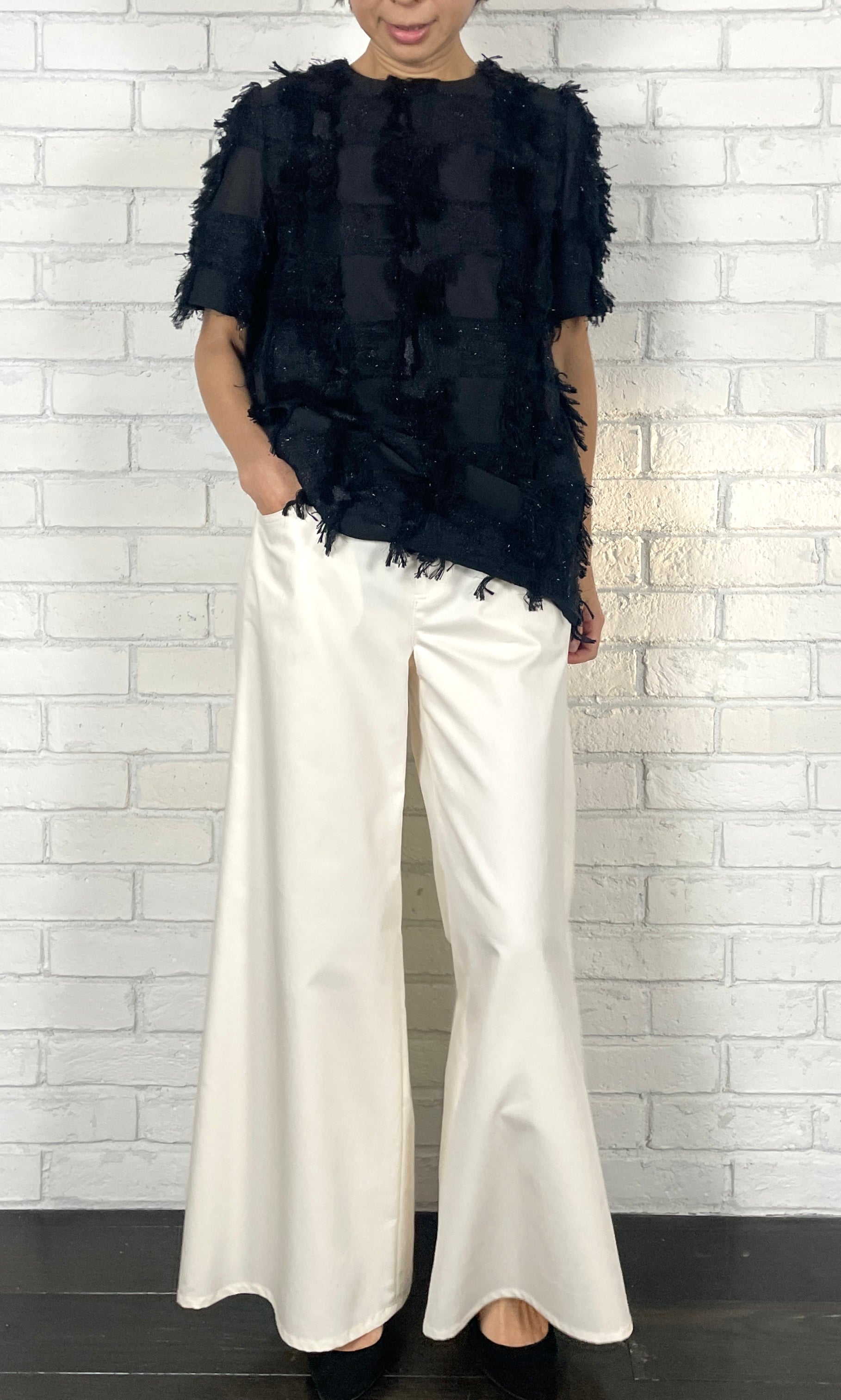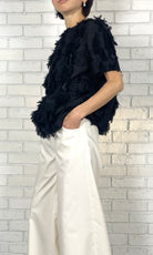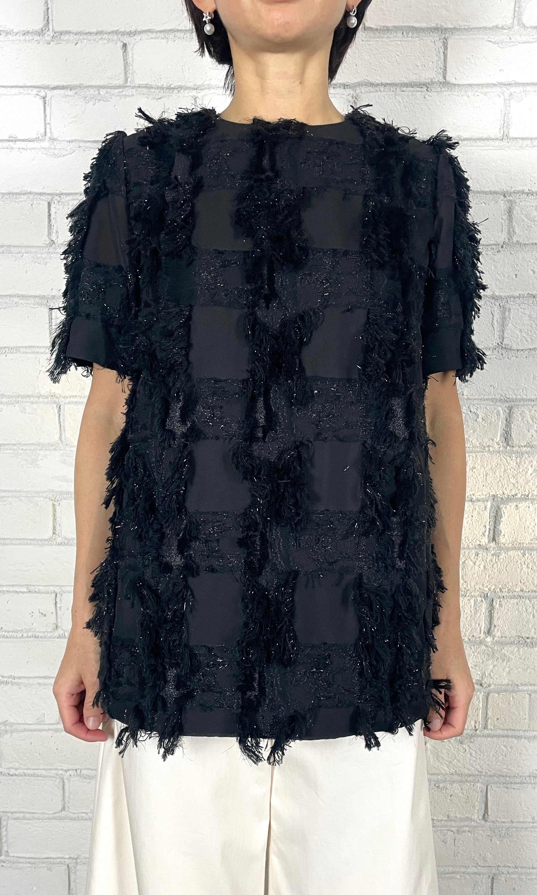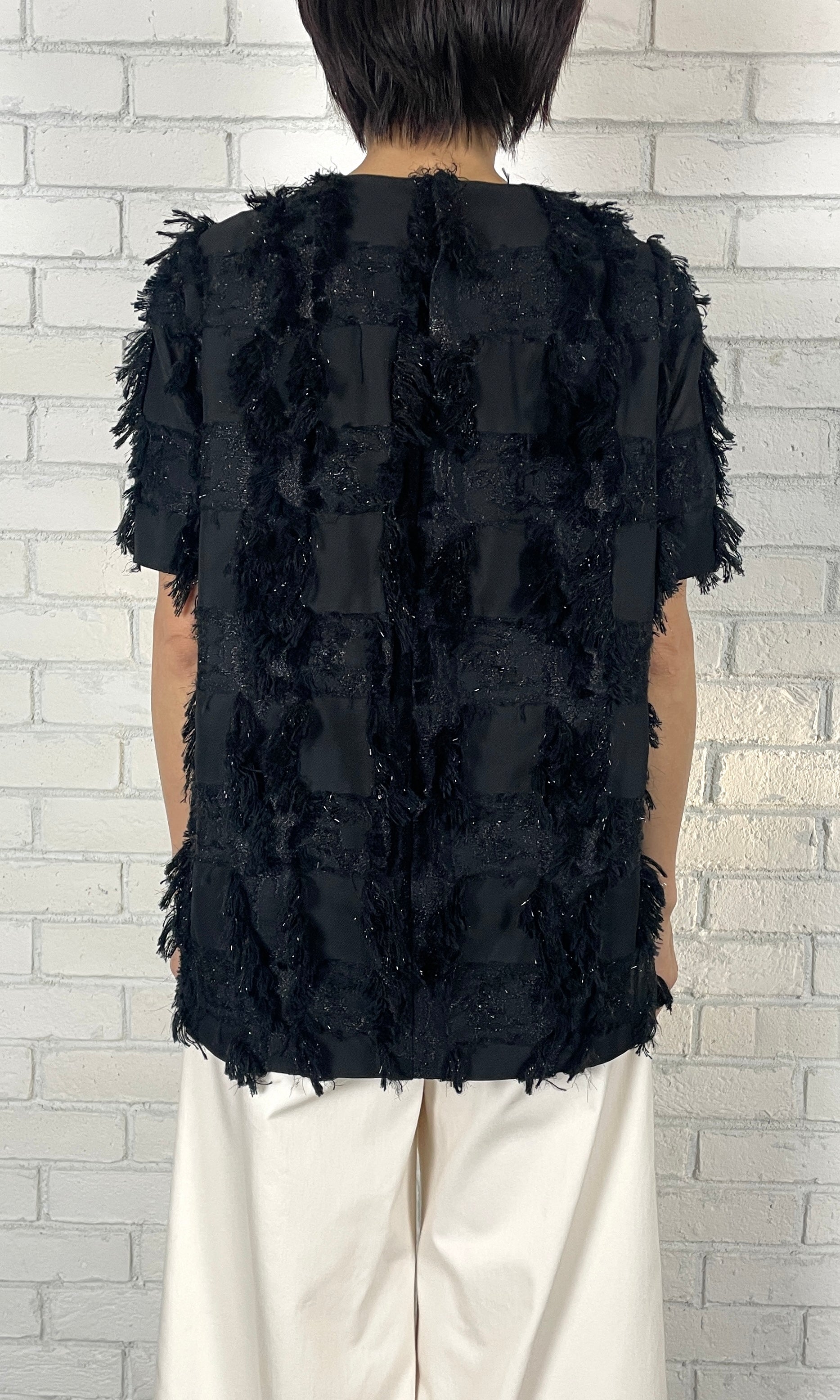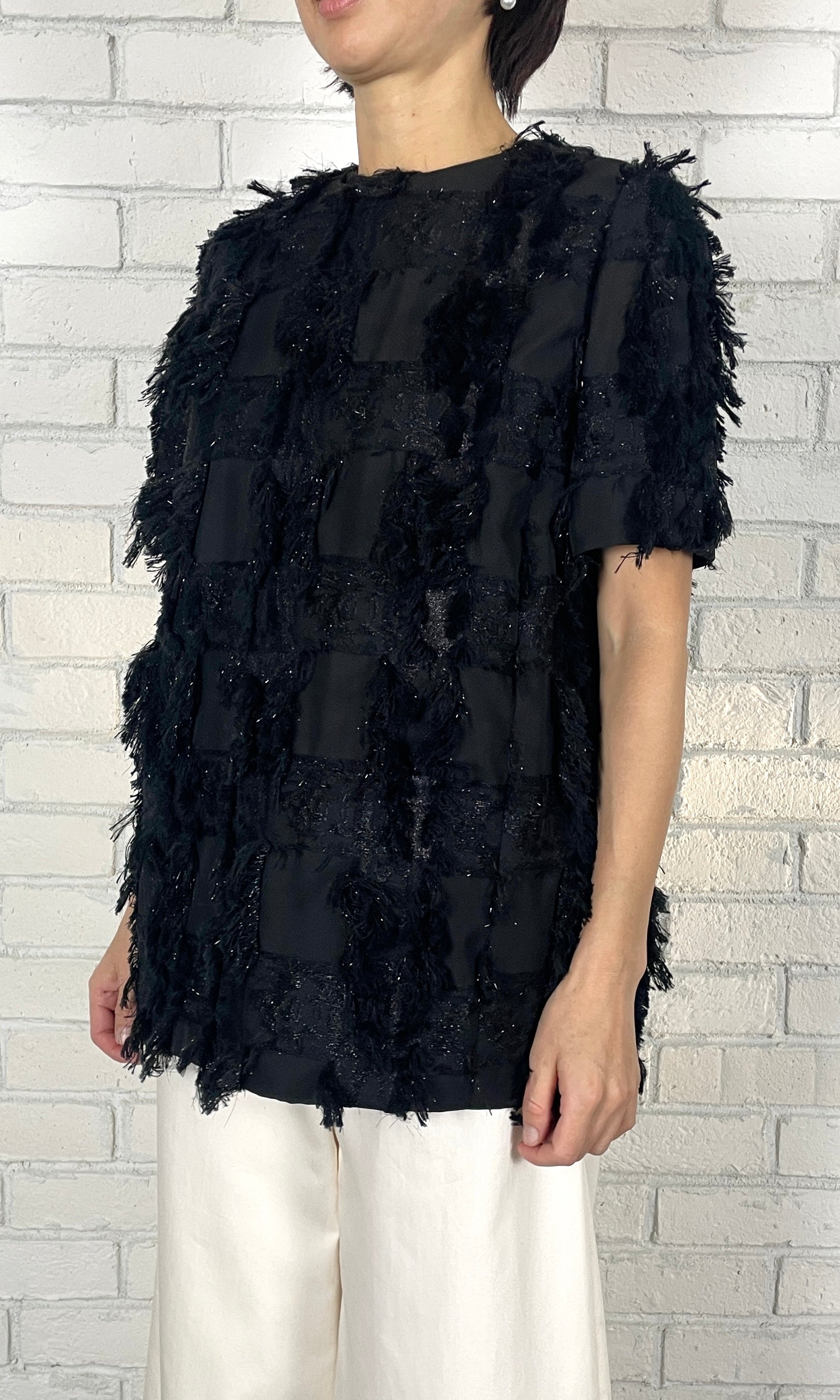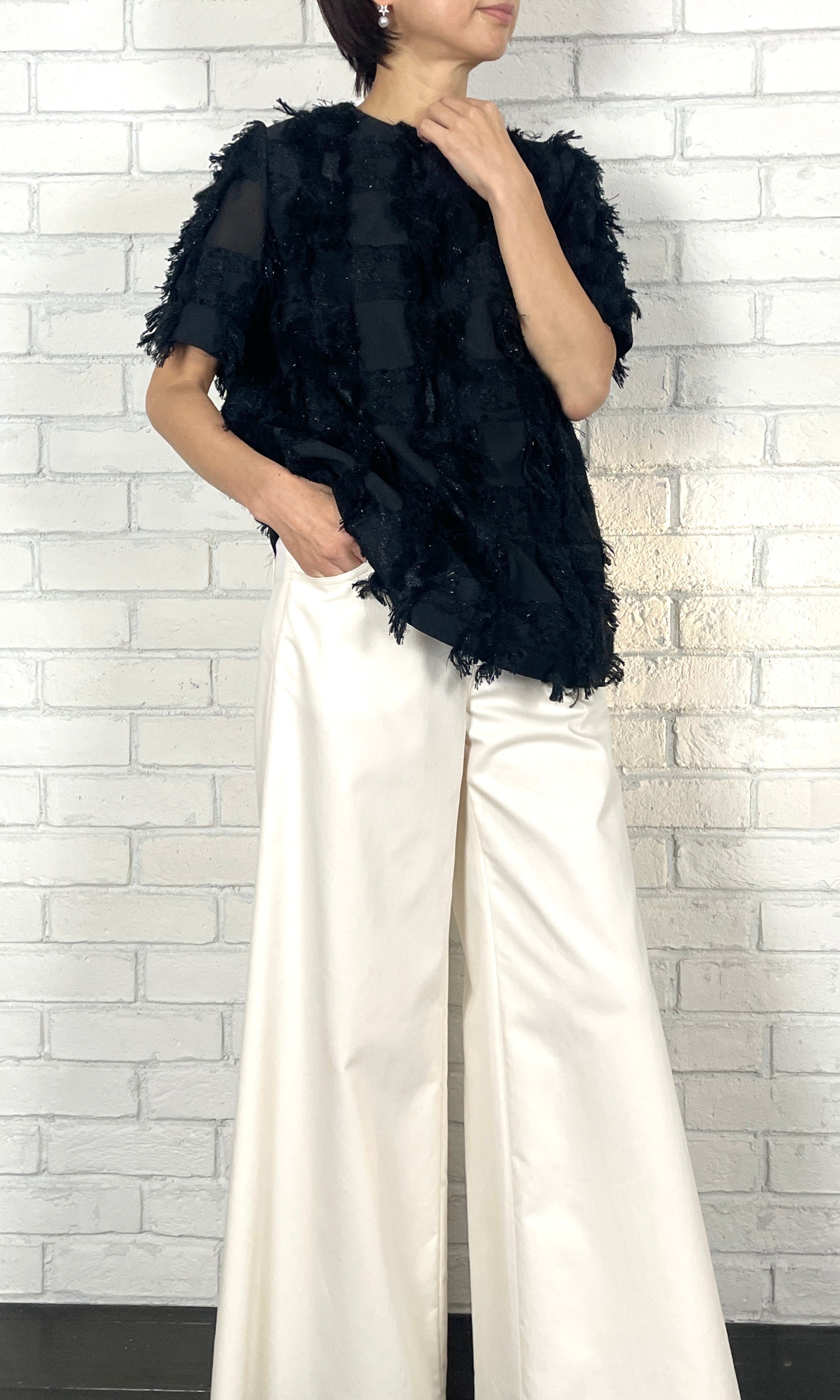 ラメクロスJQ フォルムブラウス<ブラック>