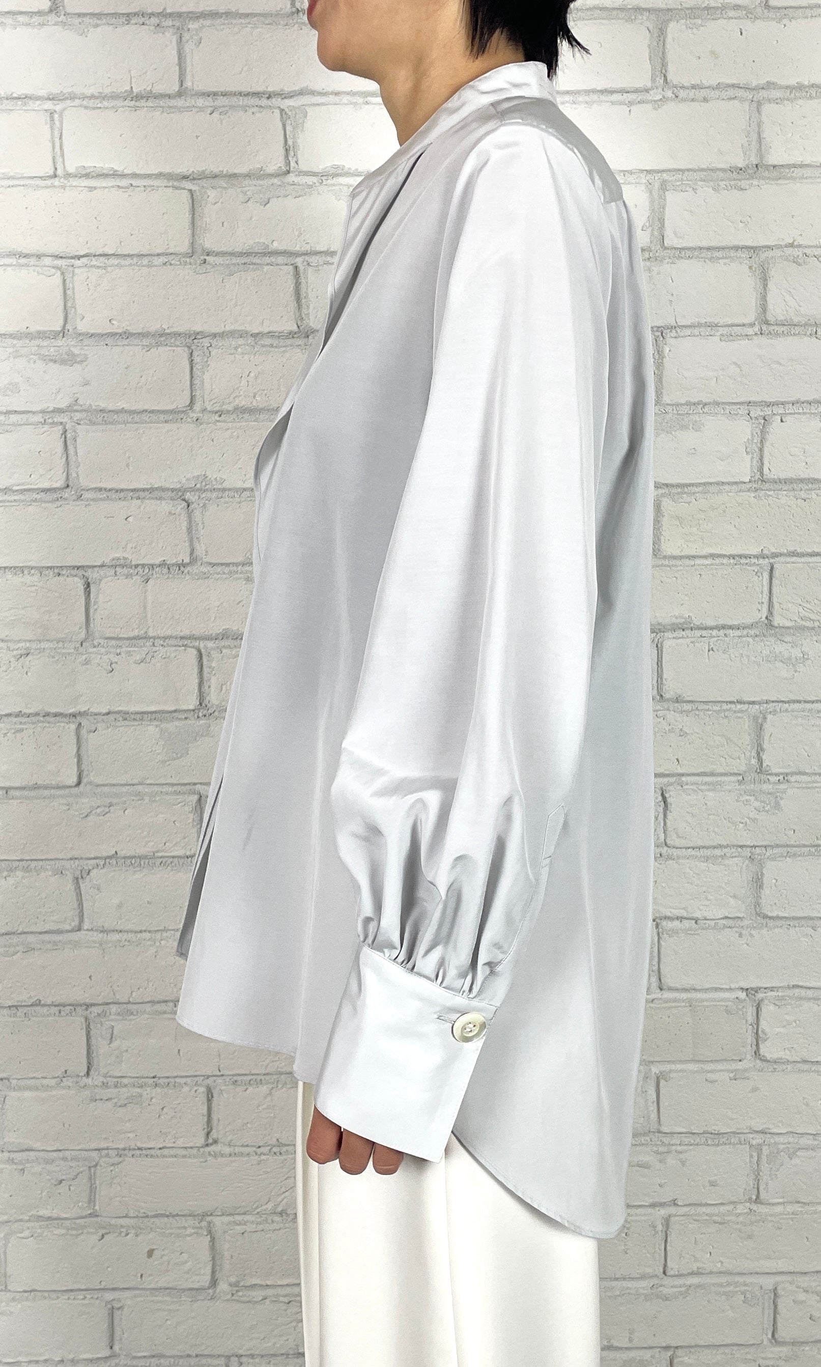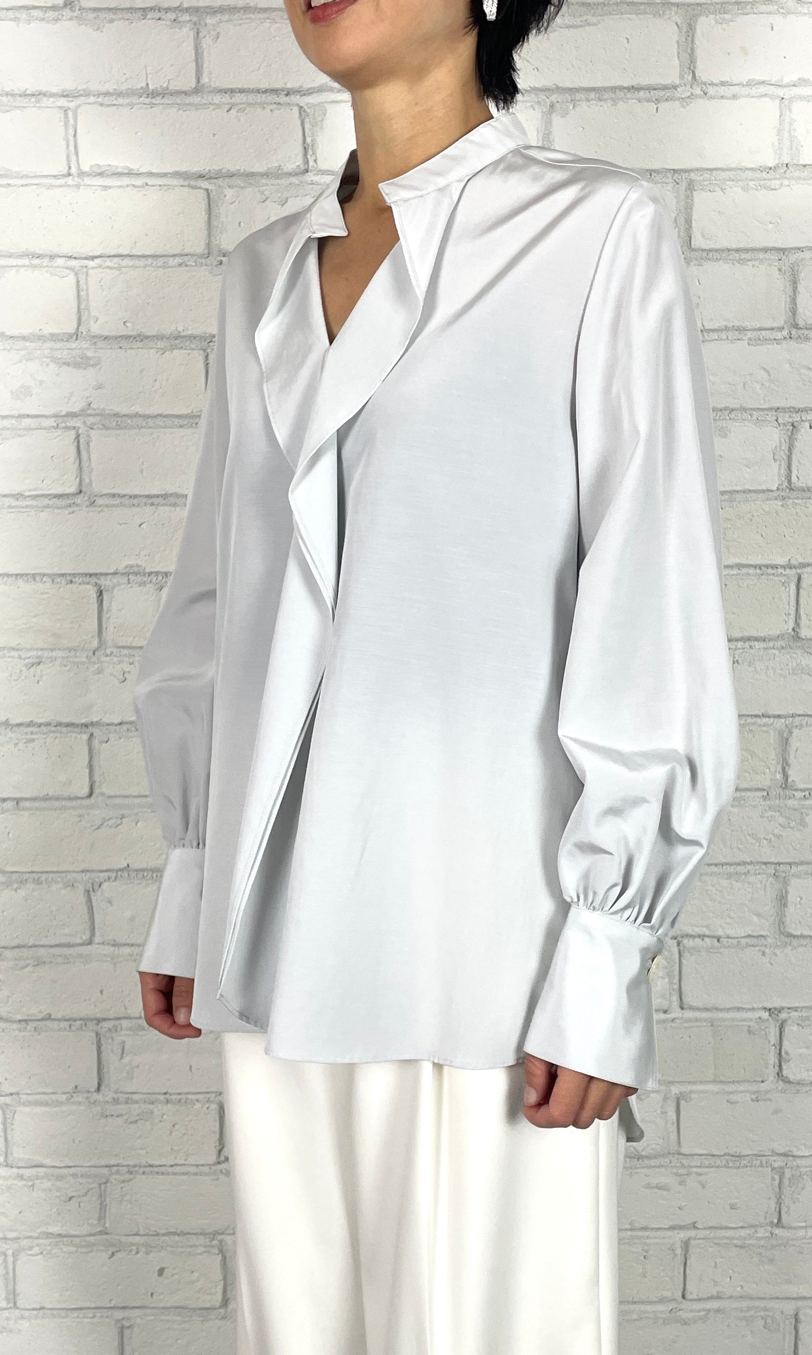 CU/COグログラン シャープフリルブラウス<ライトグレー>