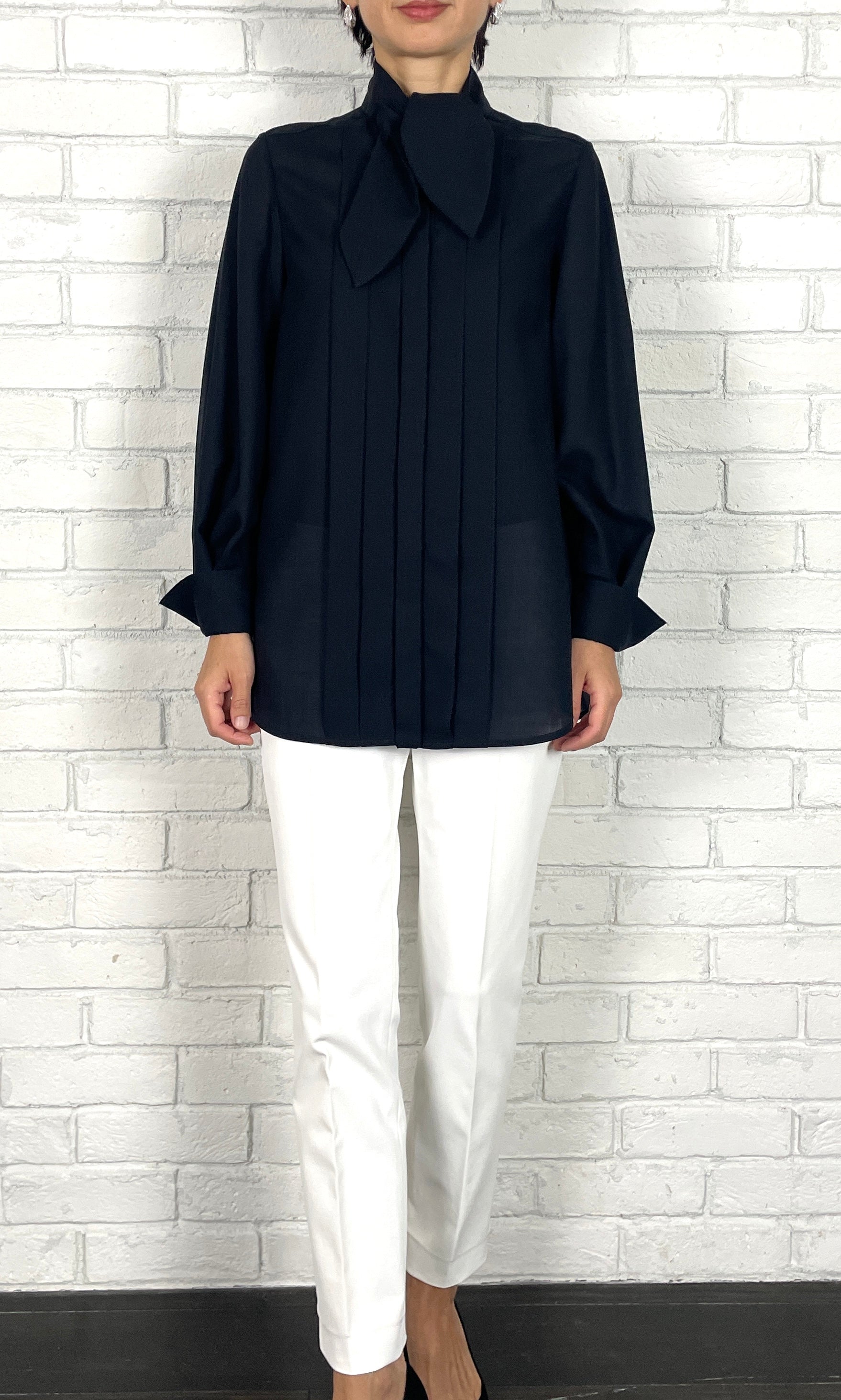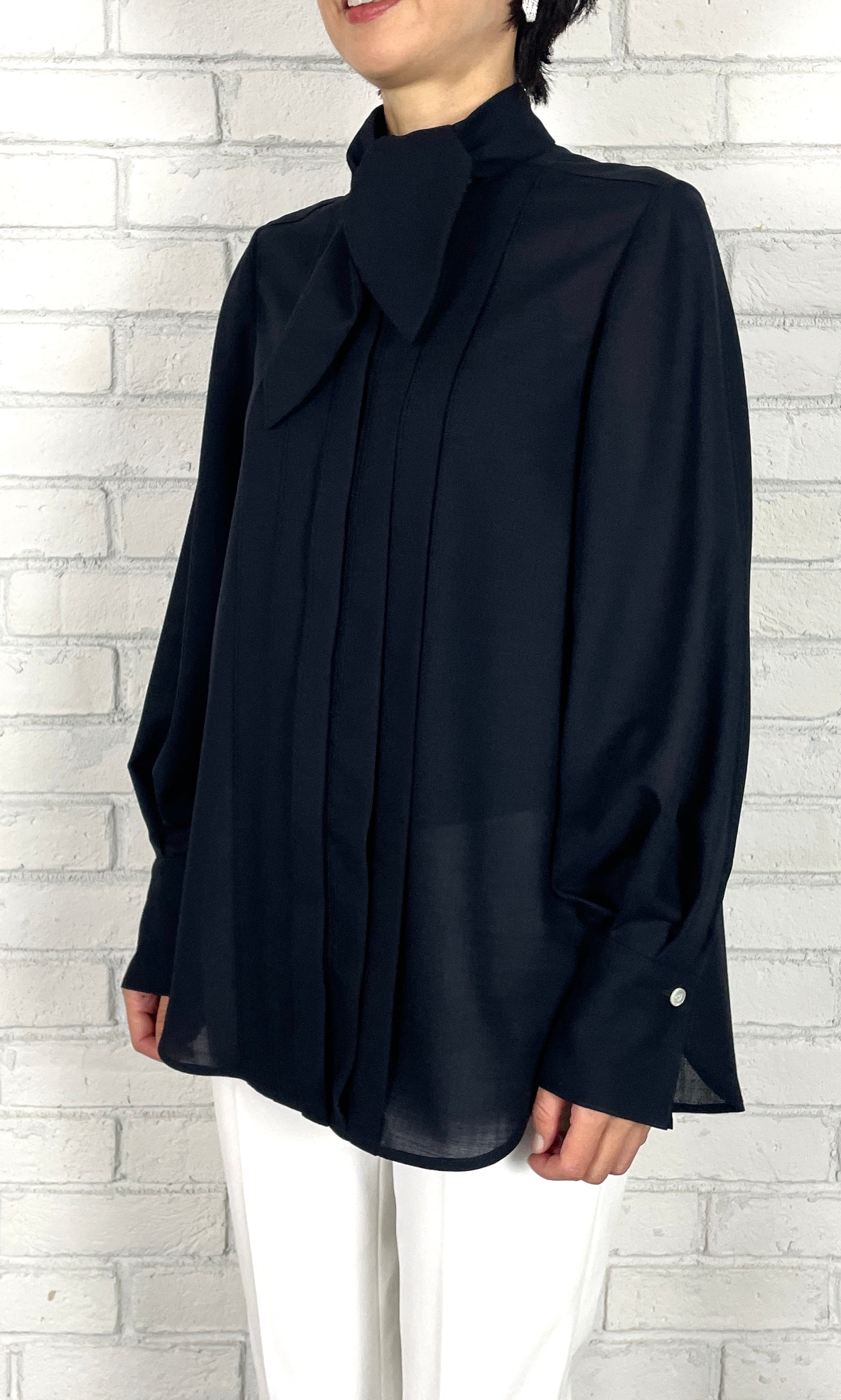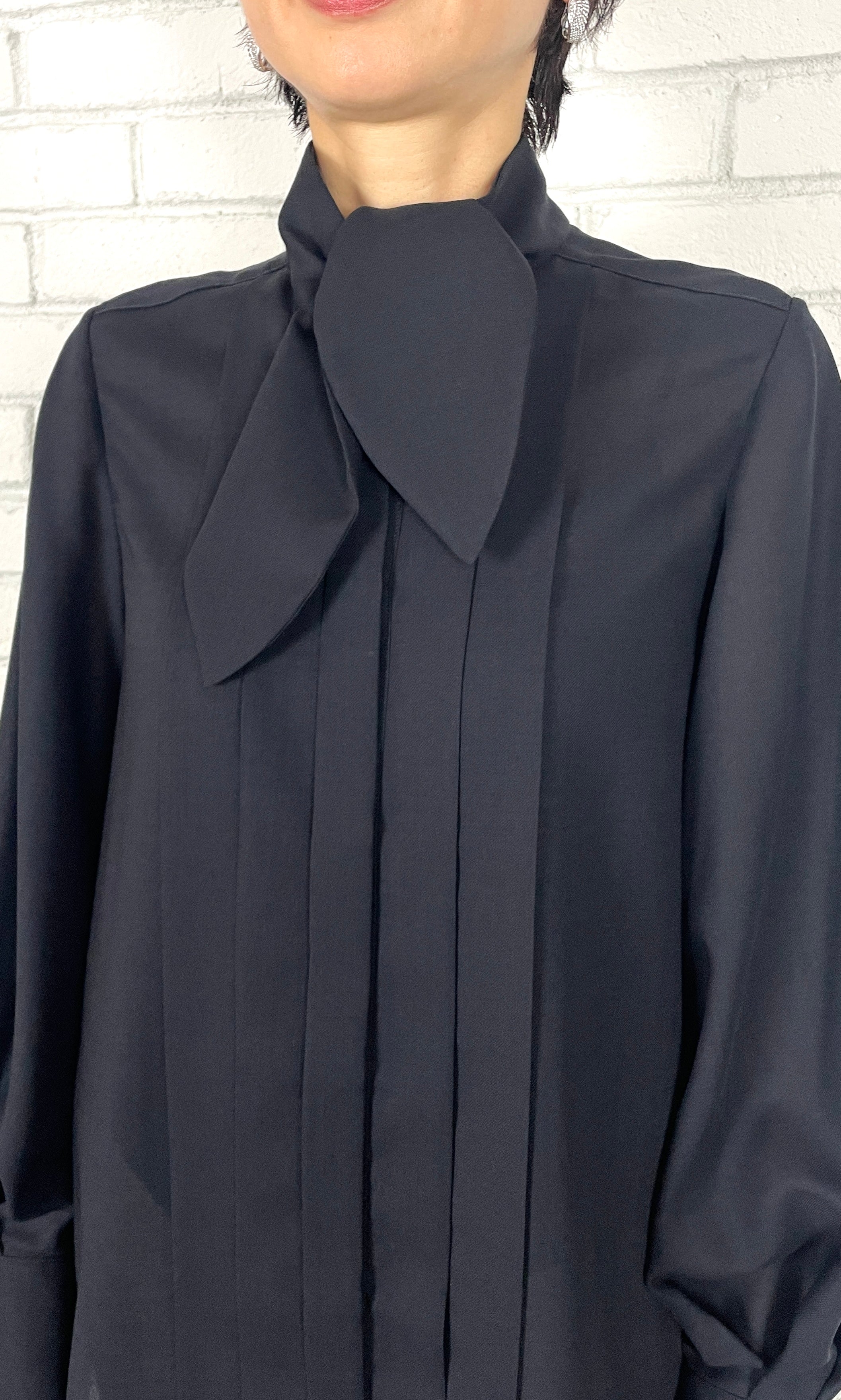 T/Wビエラ フロントタックボウタイブラウス<ネイビー>
