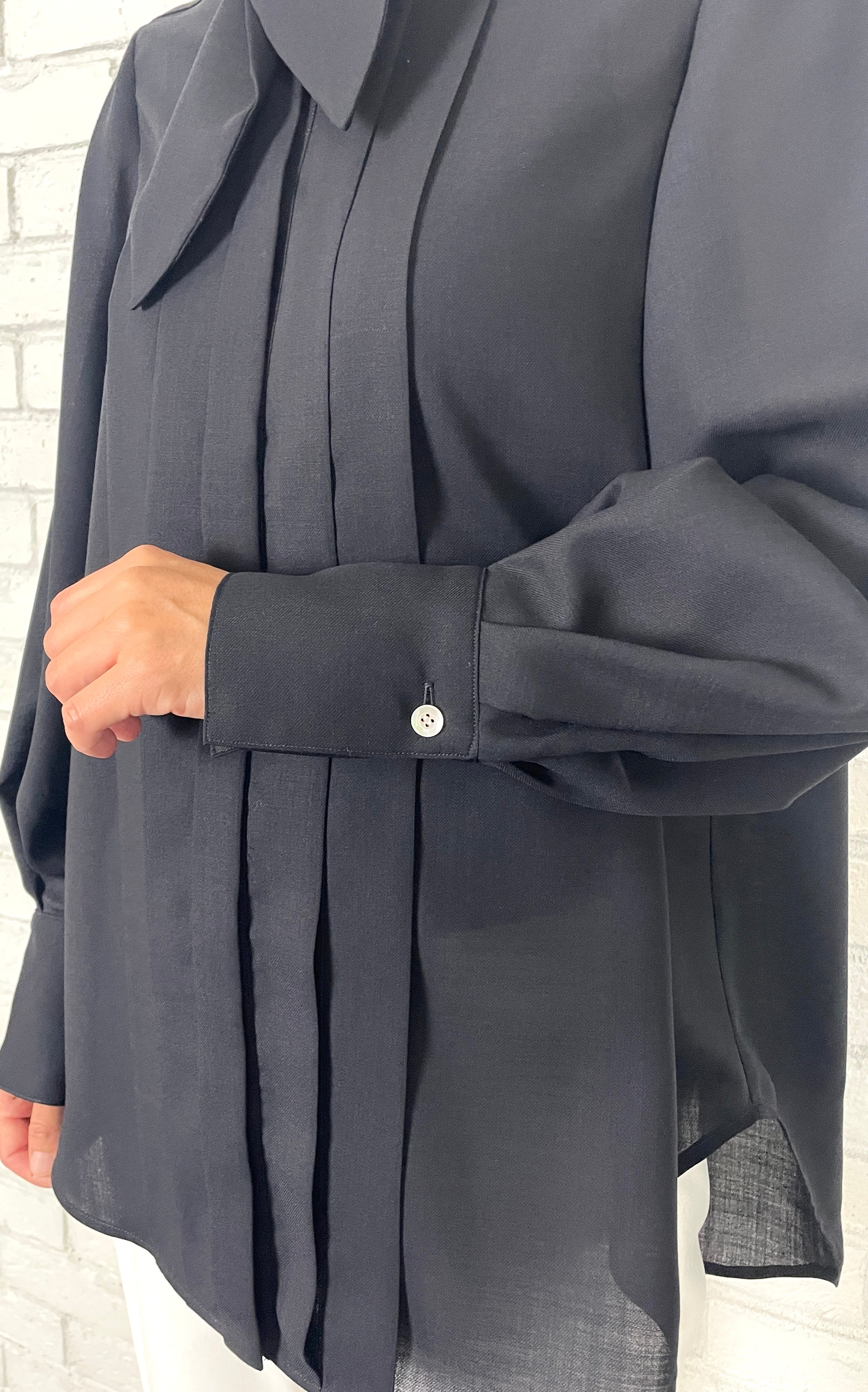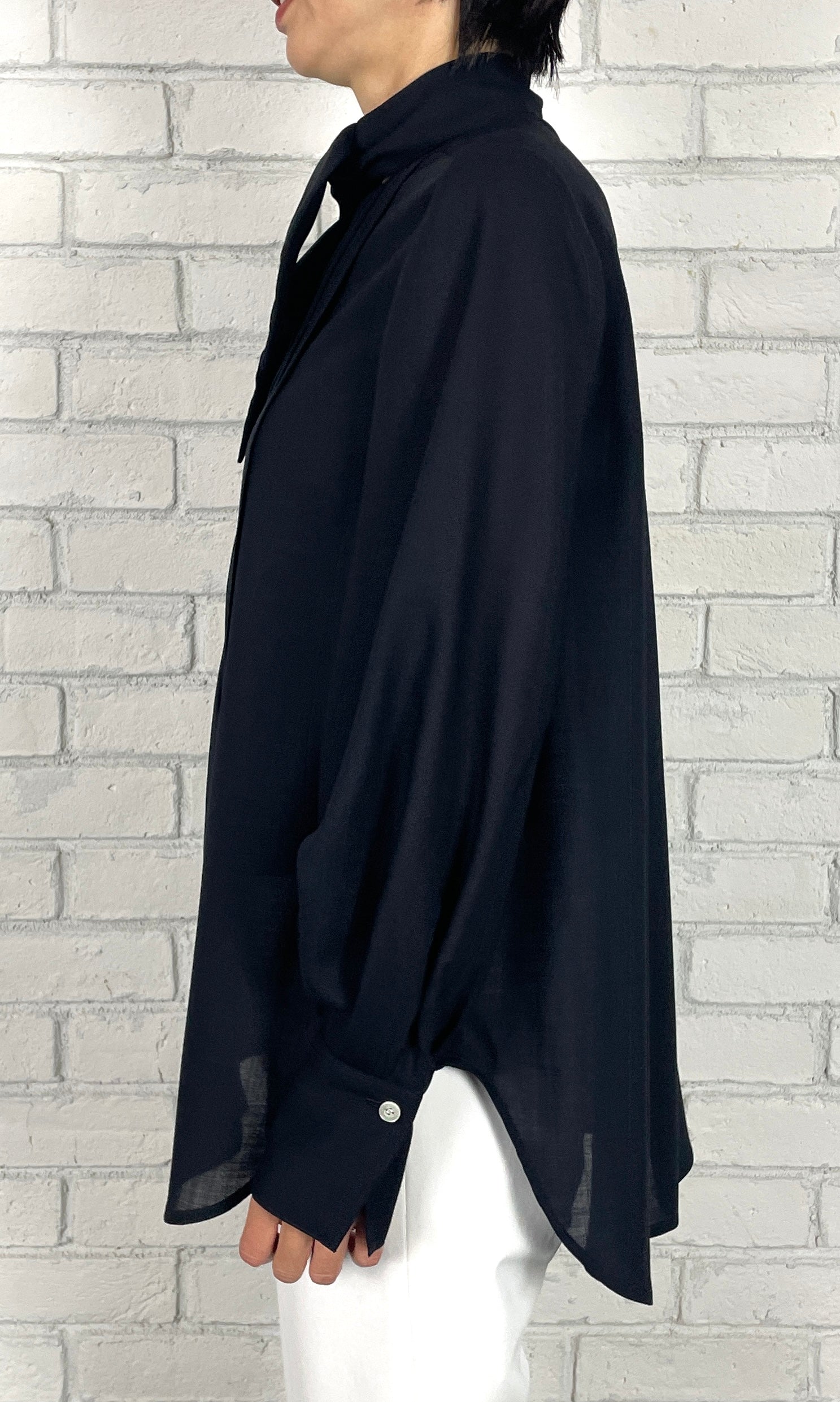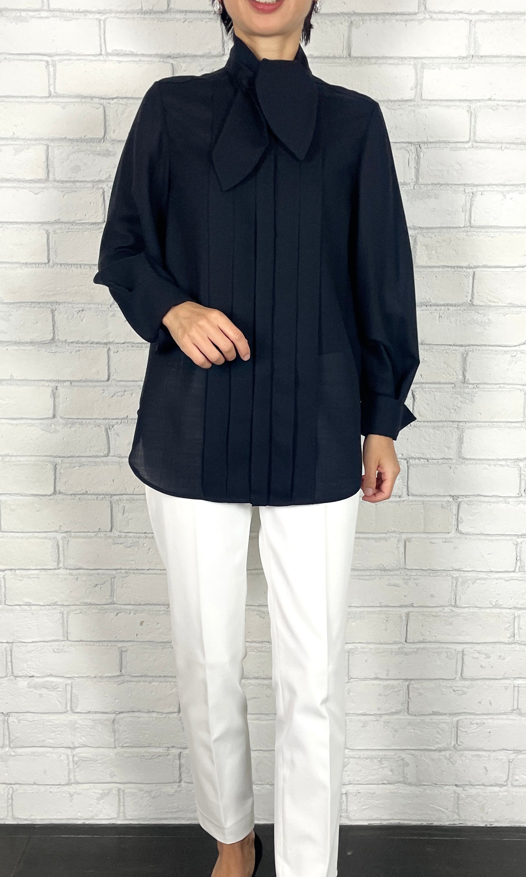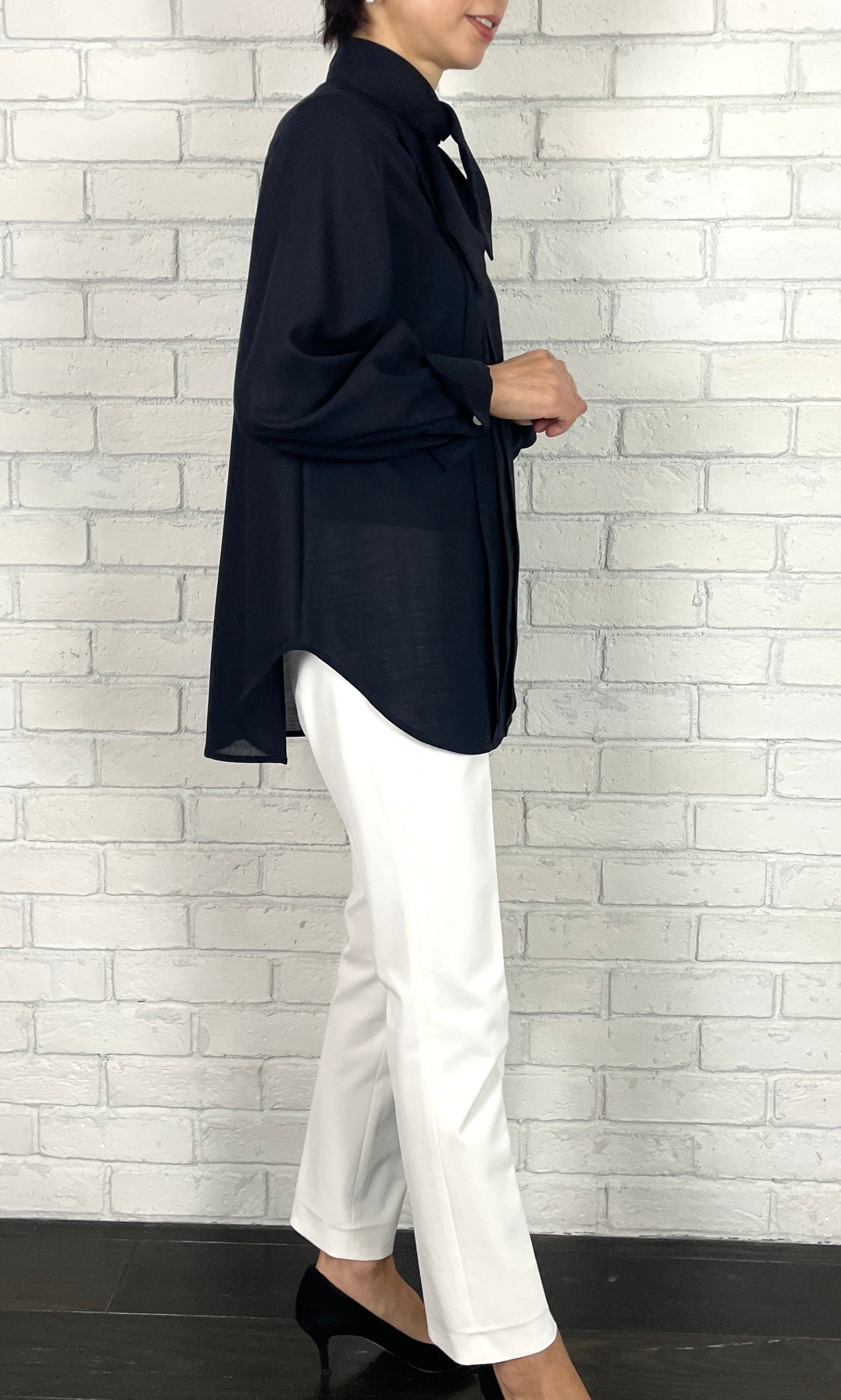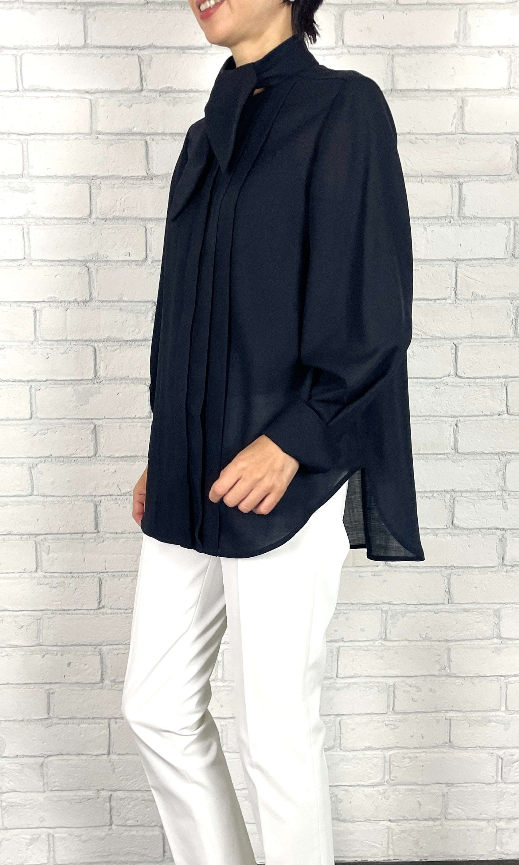 冬のコートやジャケットとのコーディネートがしやすいデザインブラウスです。