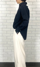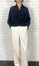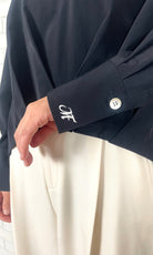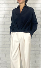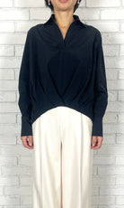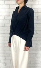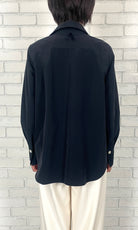 TA/COタイプライター フロントタックブラウス<ネイビー>