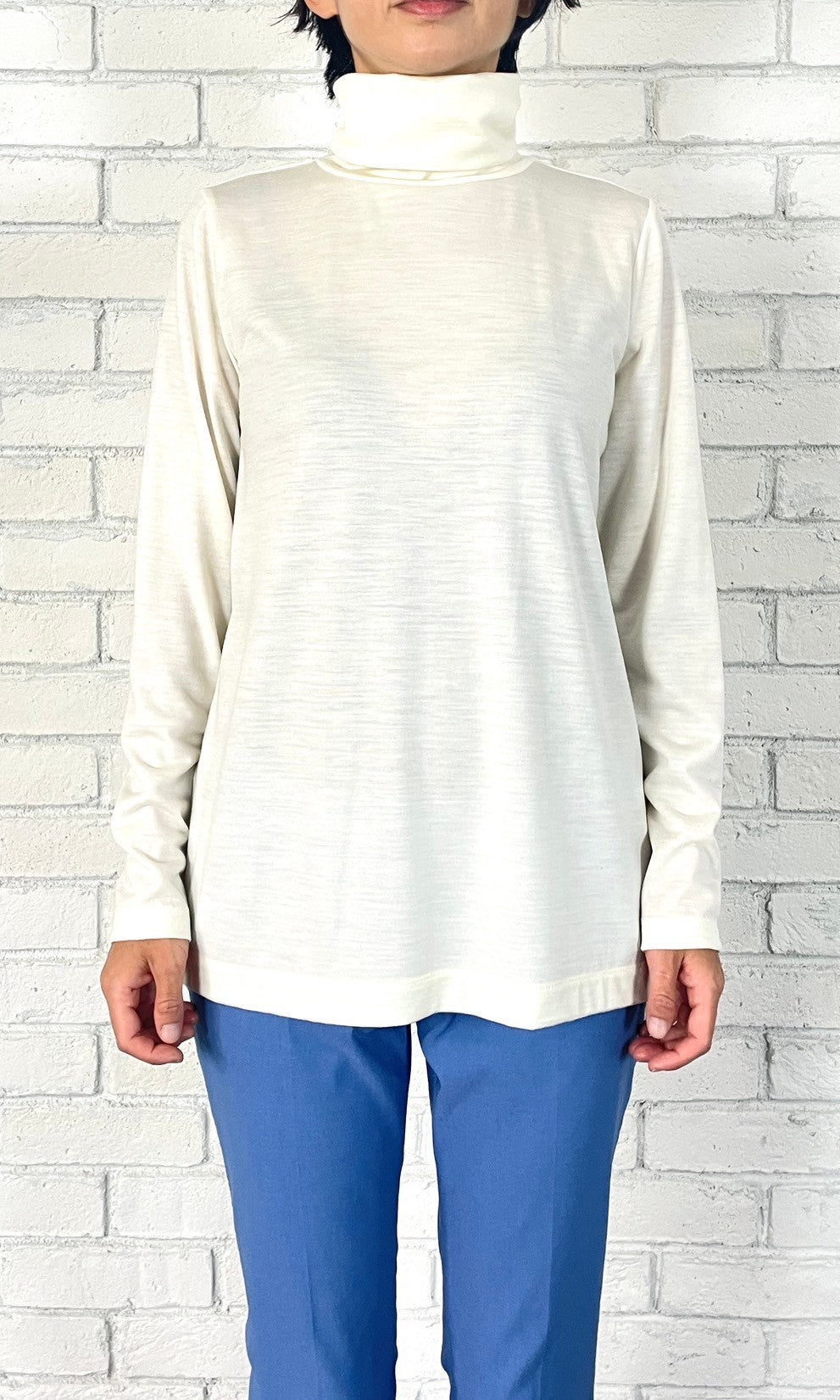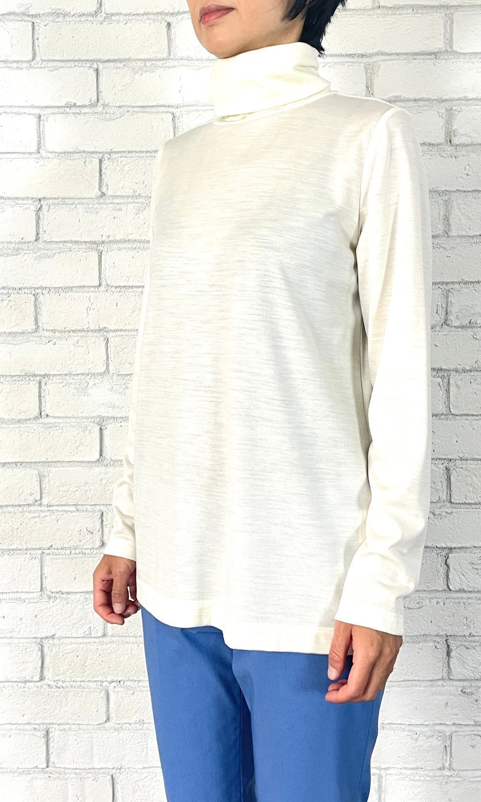 M・fil直営店&オンラインストア限定 テックウール天竺 タートルネックプルオーバー<ホワイト>