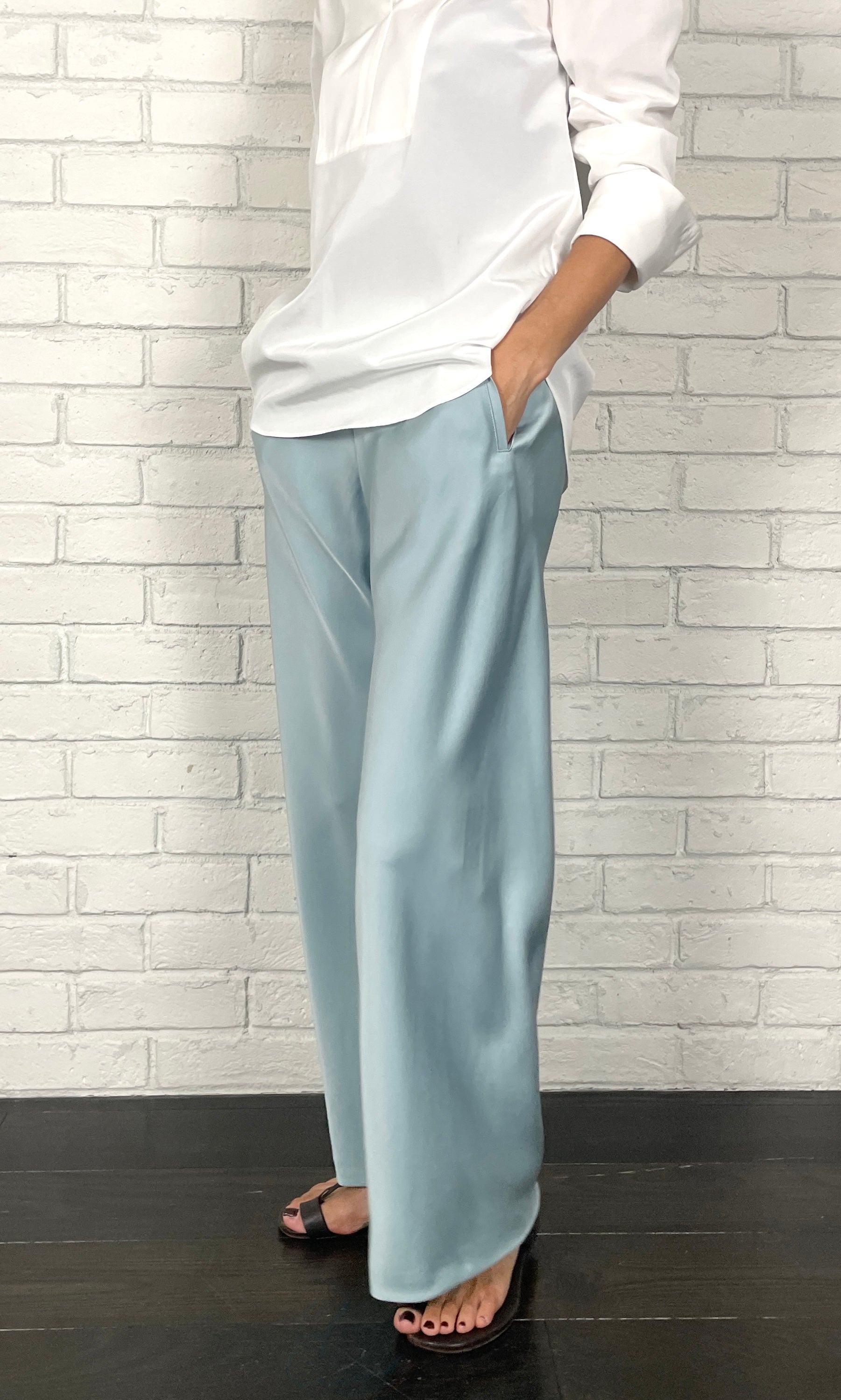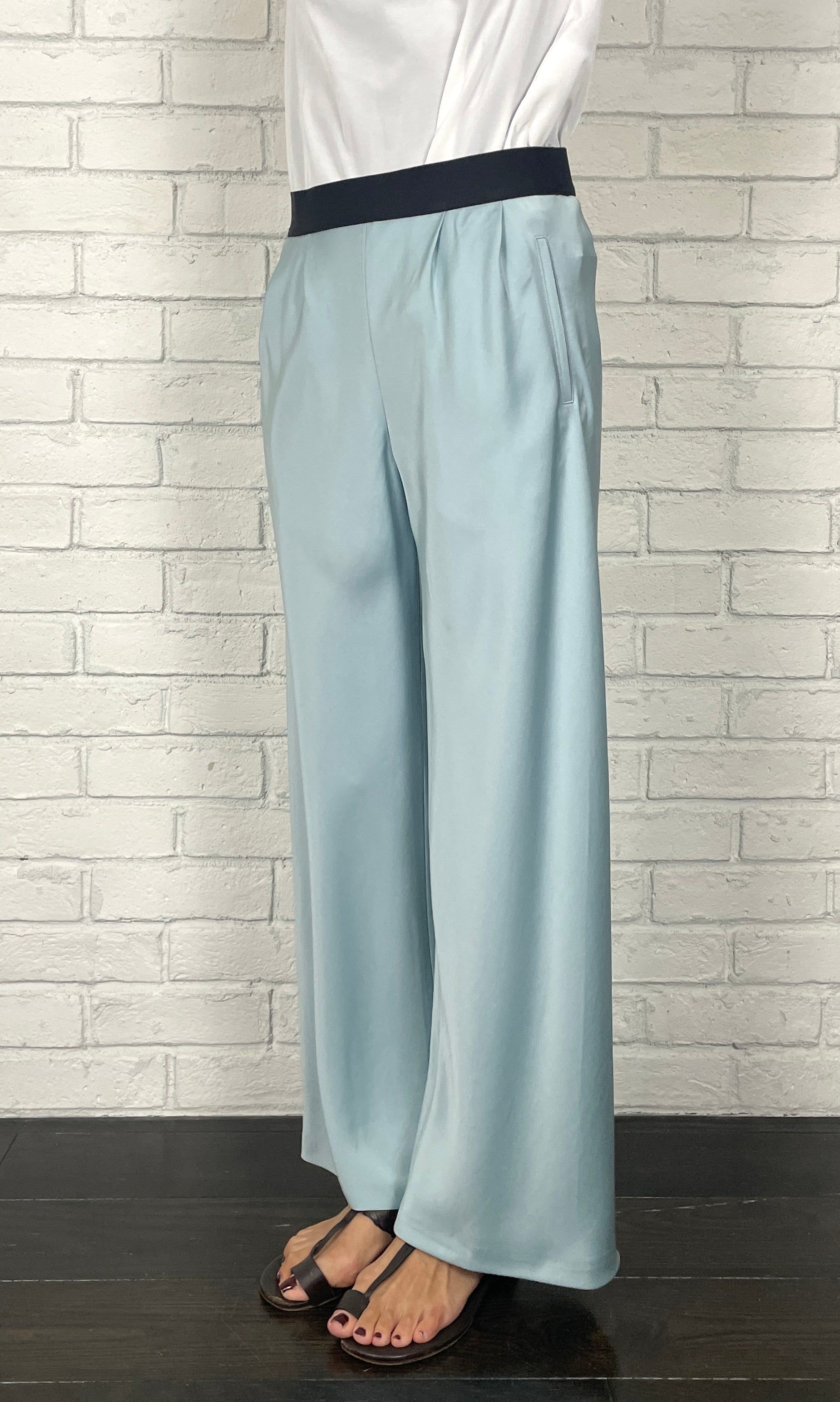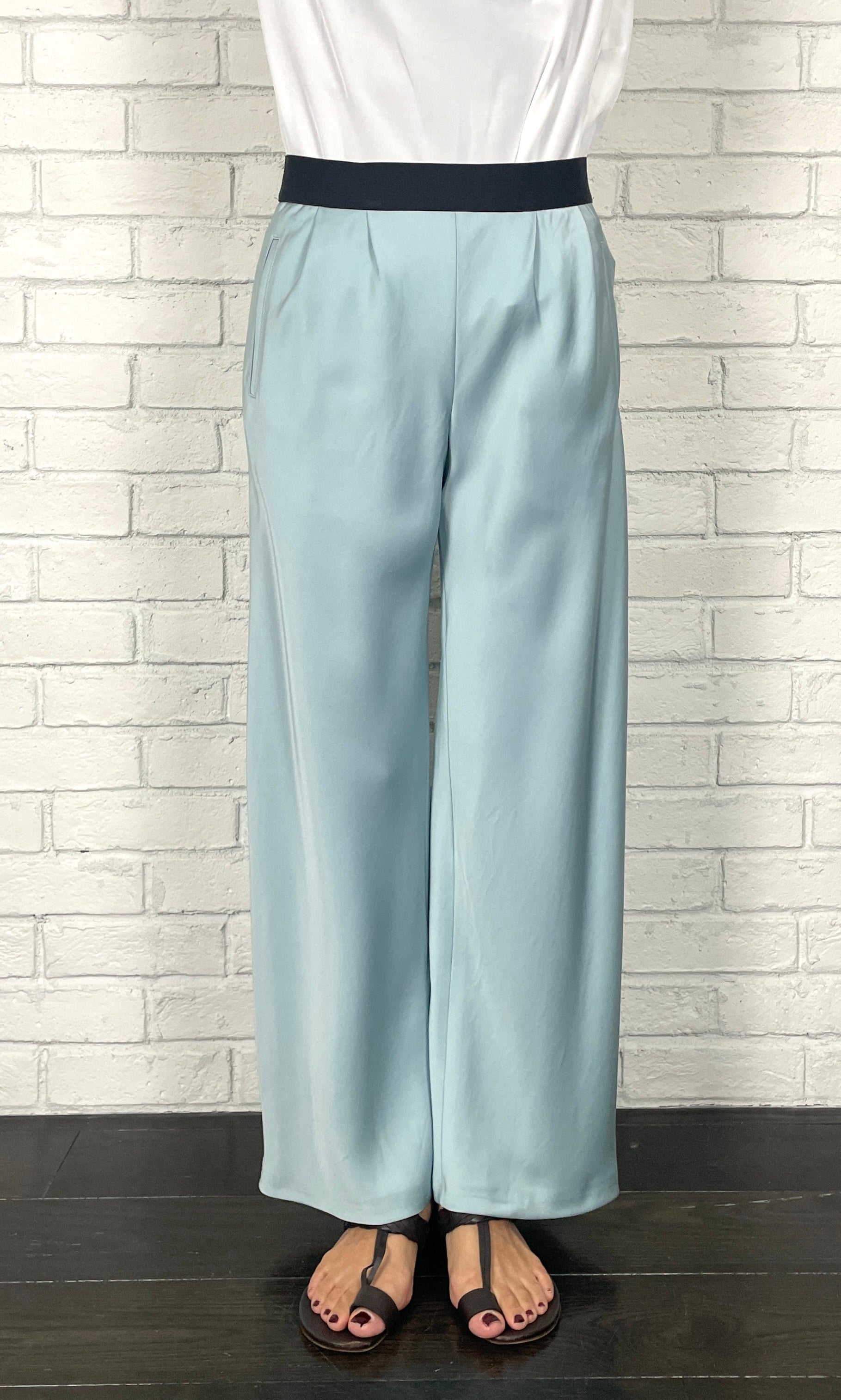 ストレッチWサテン リラクシーイージートラウザーズ <ライトブルー>