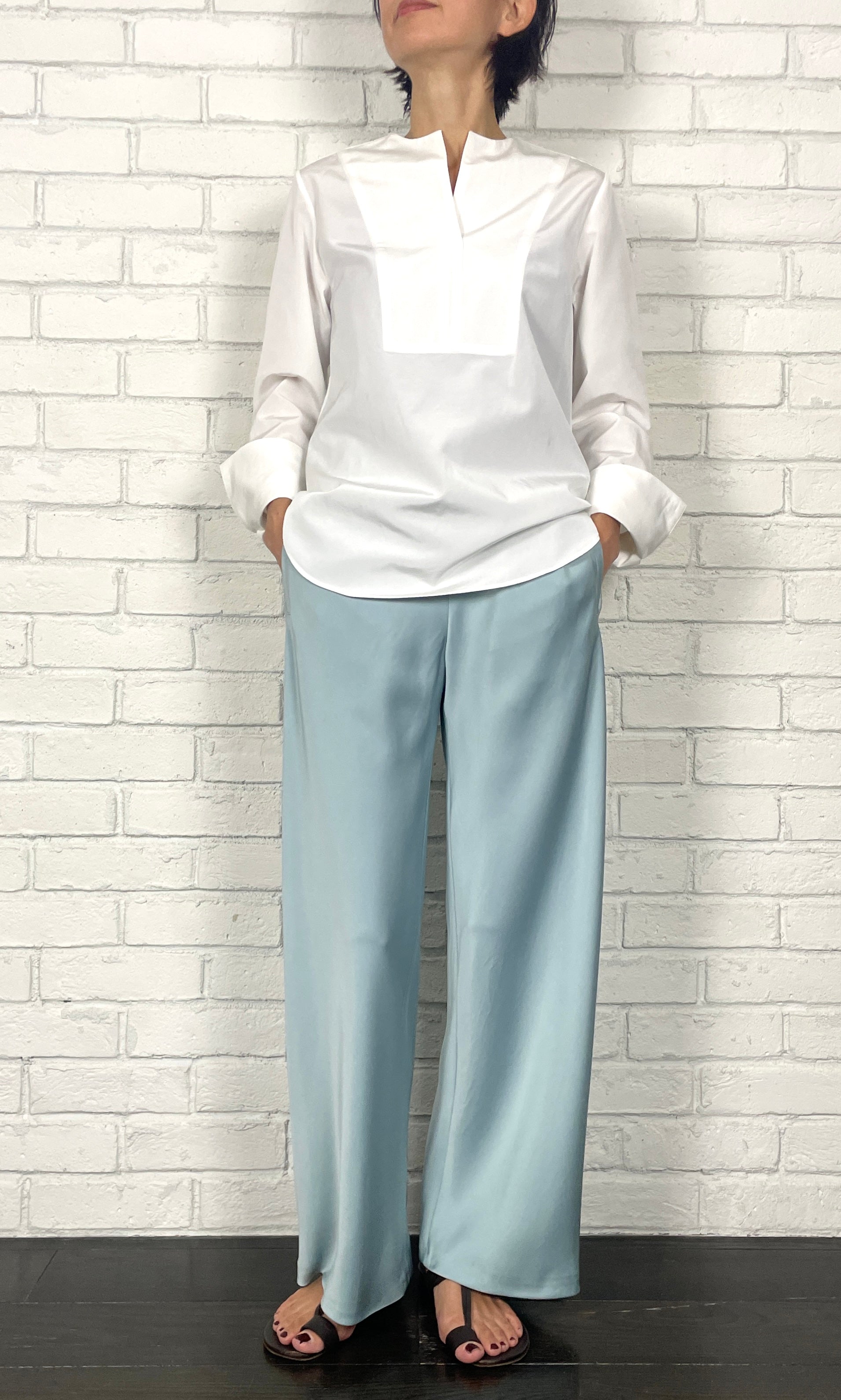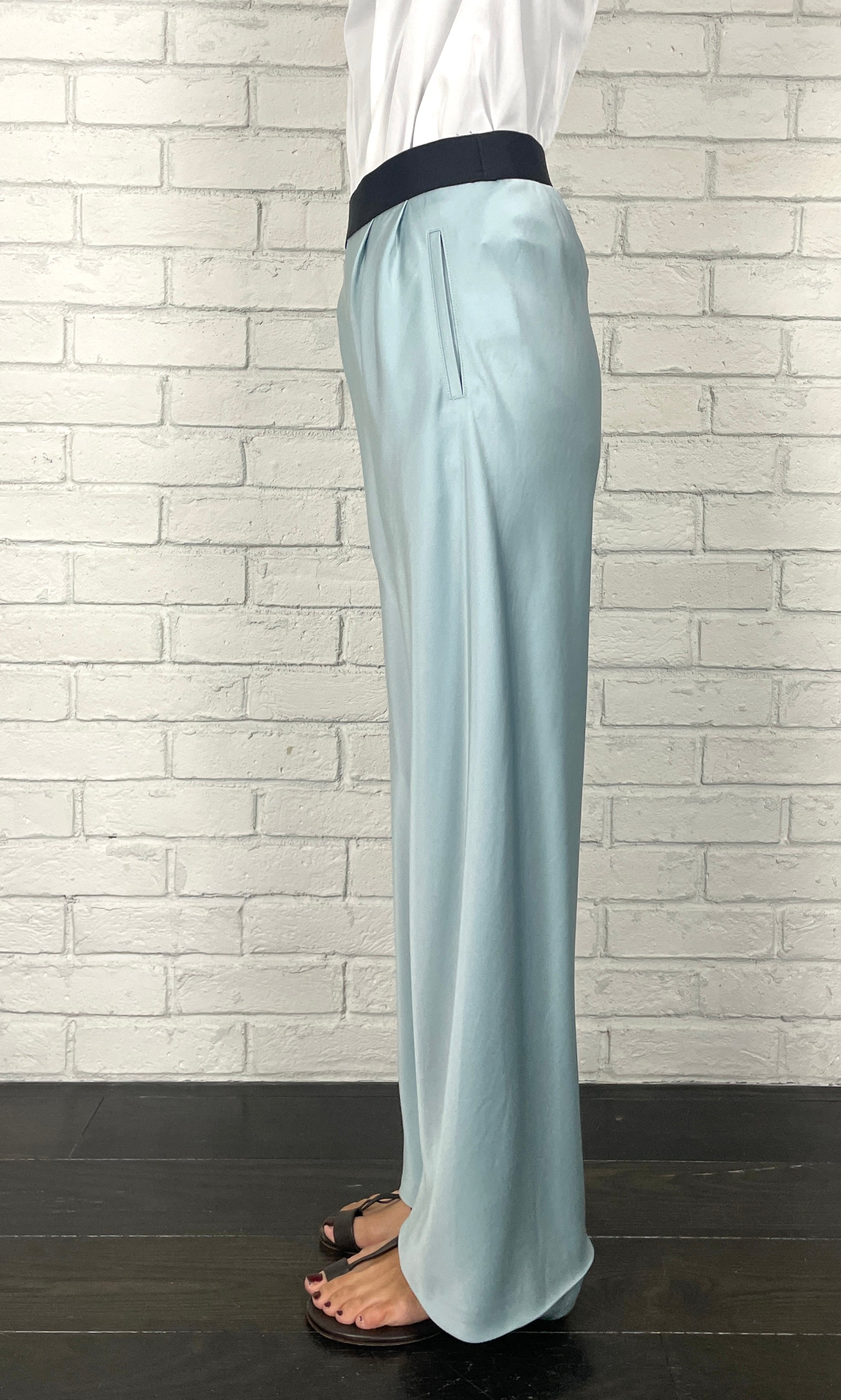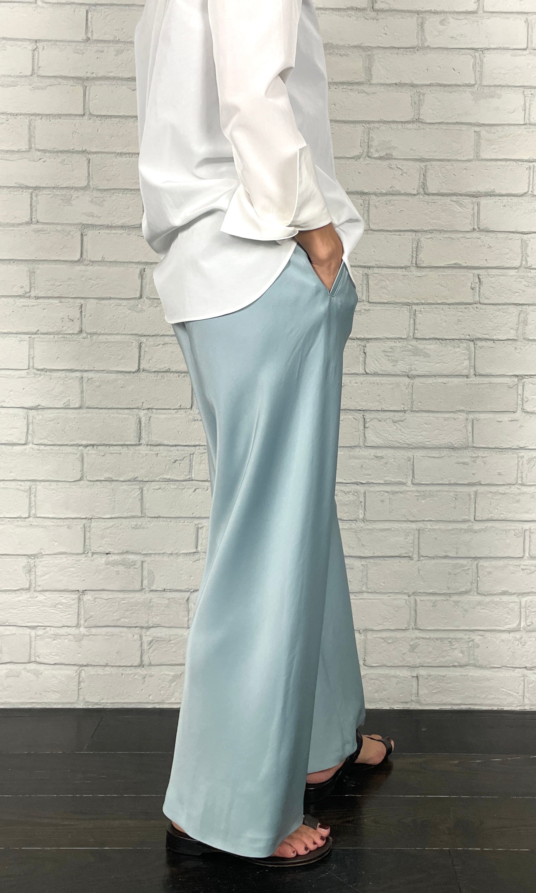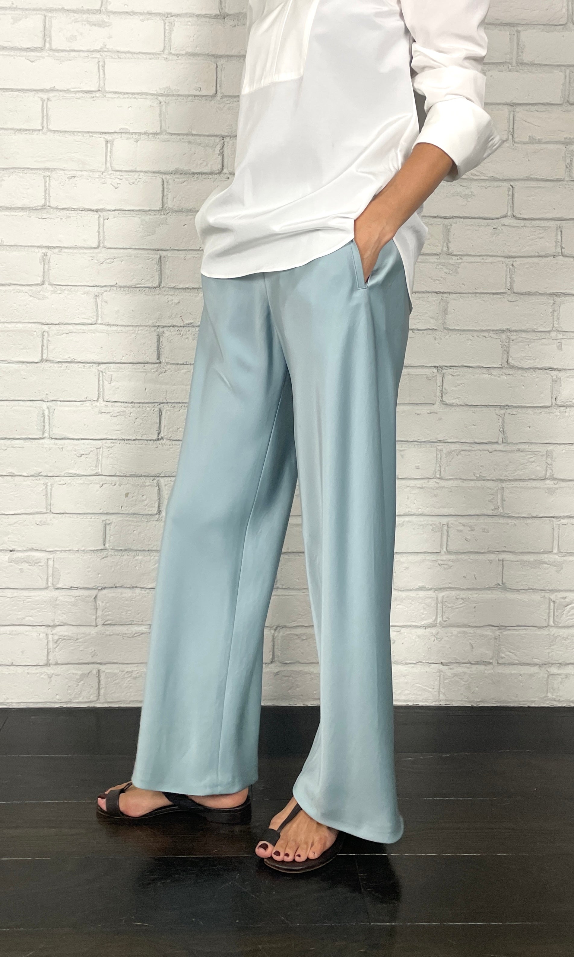 ストレッチWサテン リラクシーイージートラウザーズ <ライトブルー>