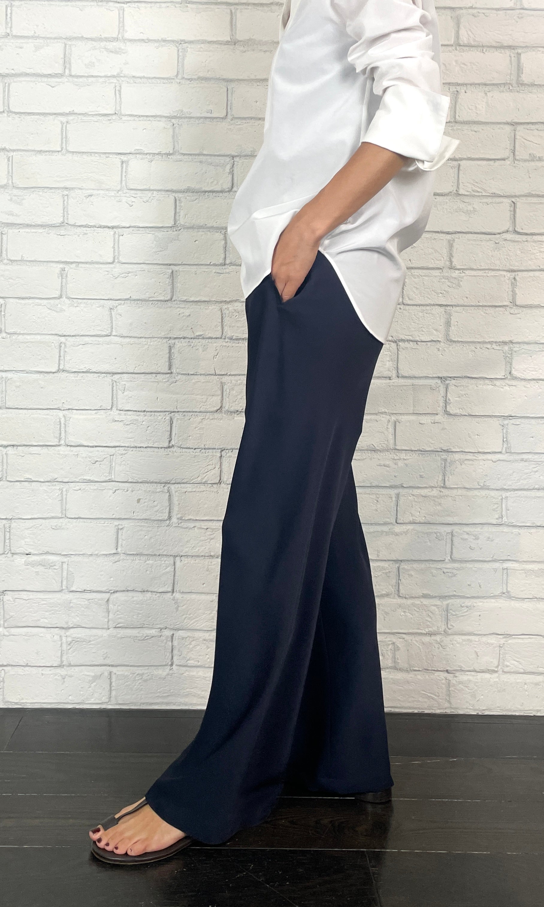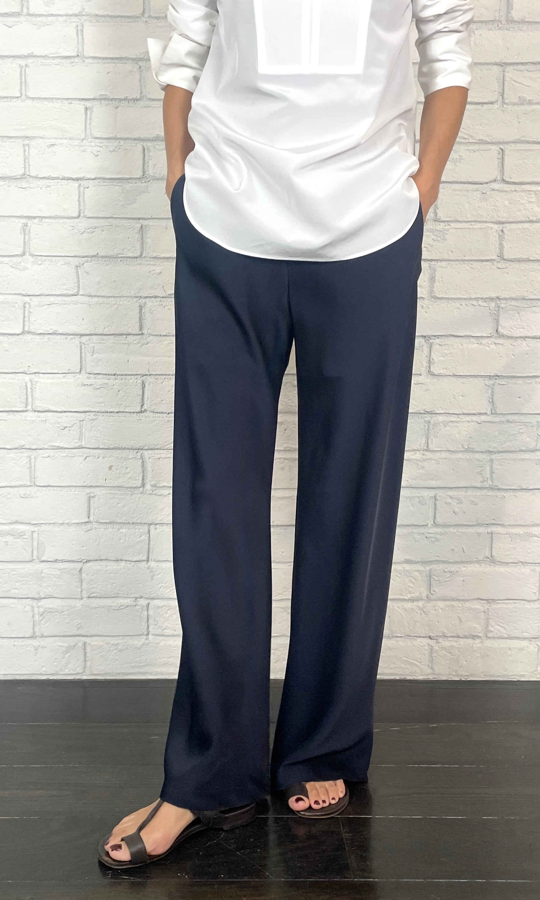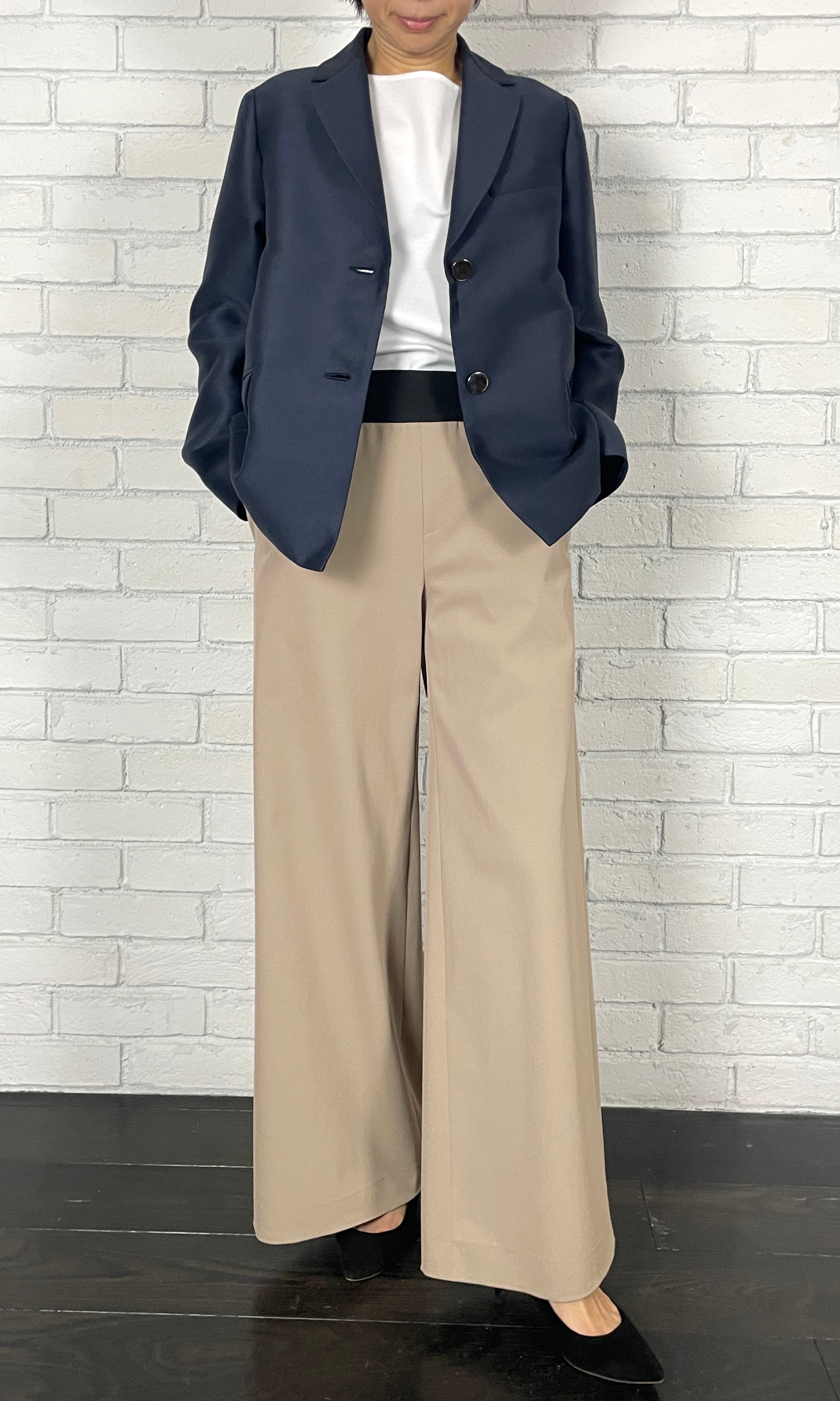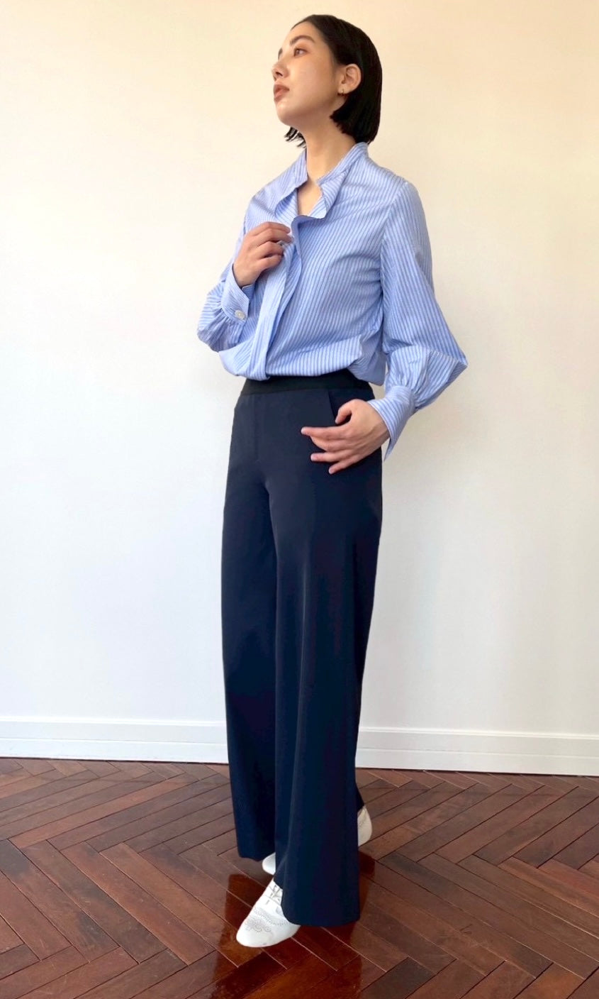 ストレッチWサテン リラクシーイージートラウザーズ <ネイビー>