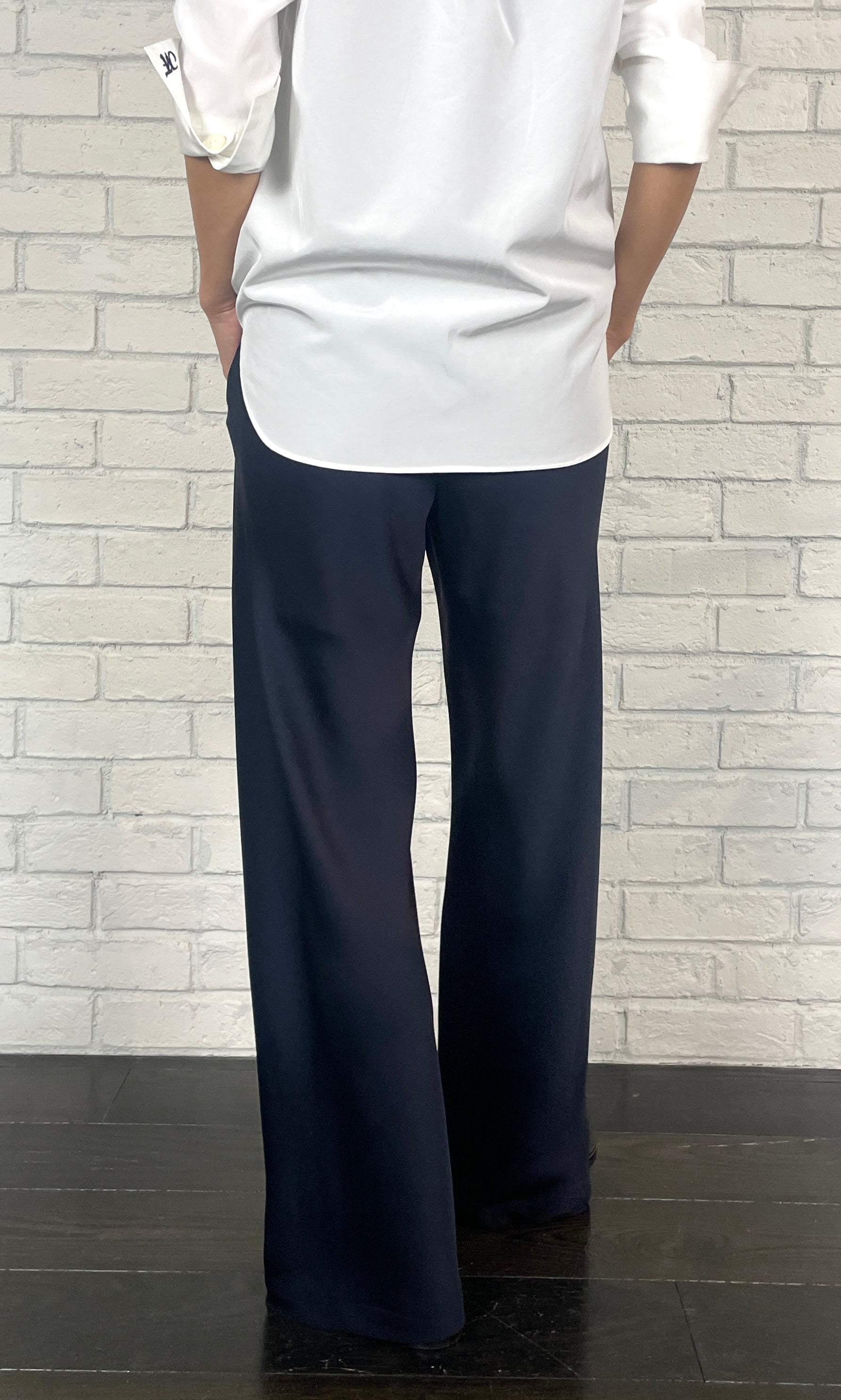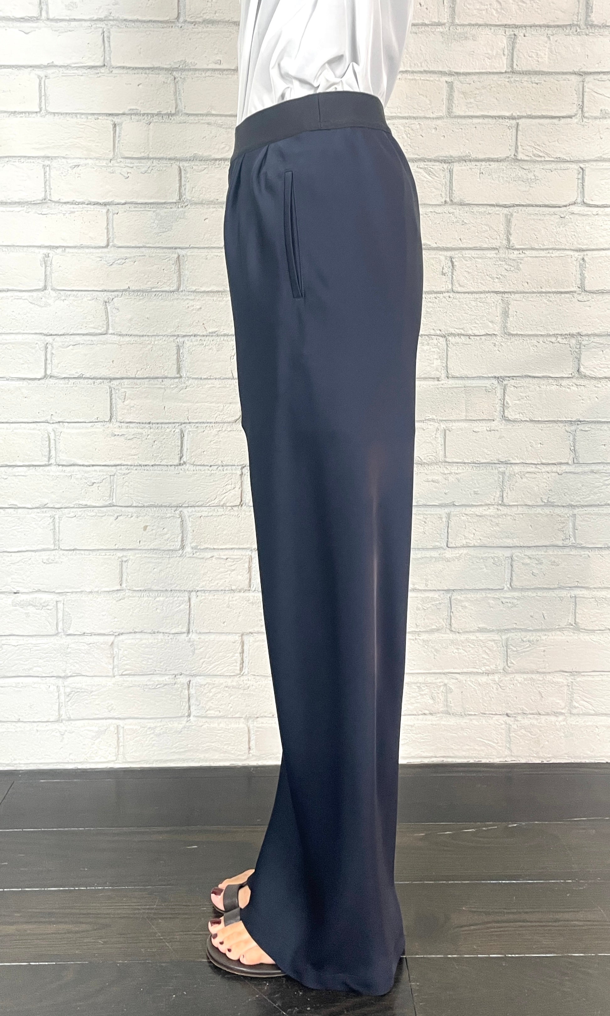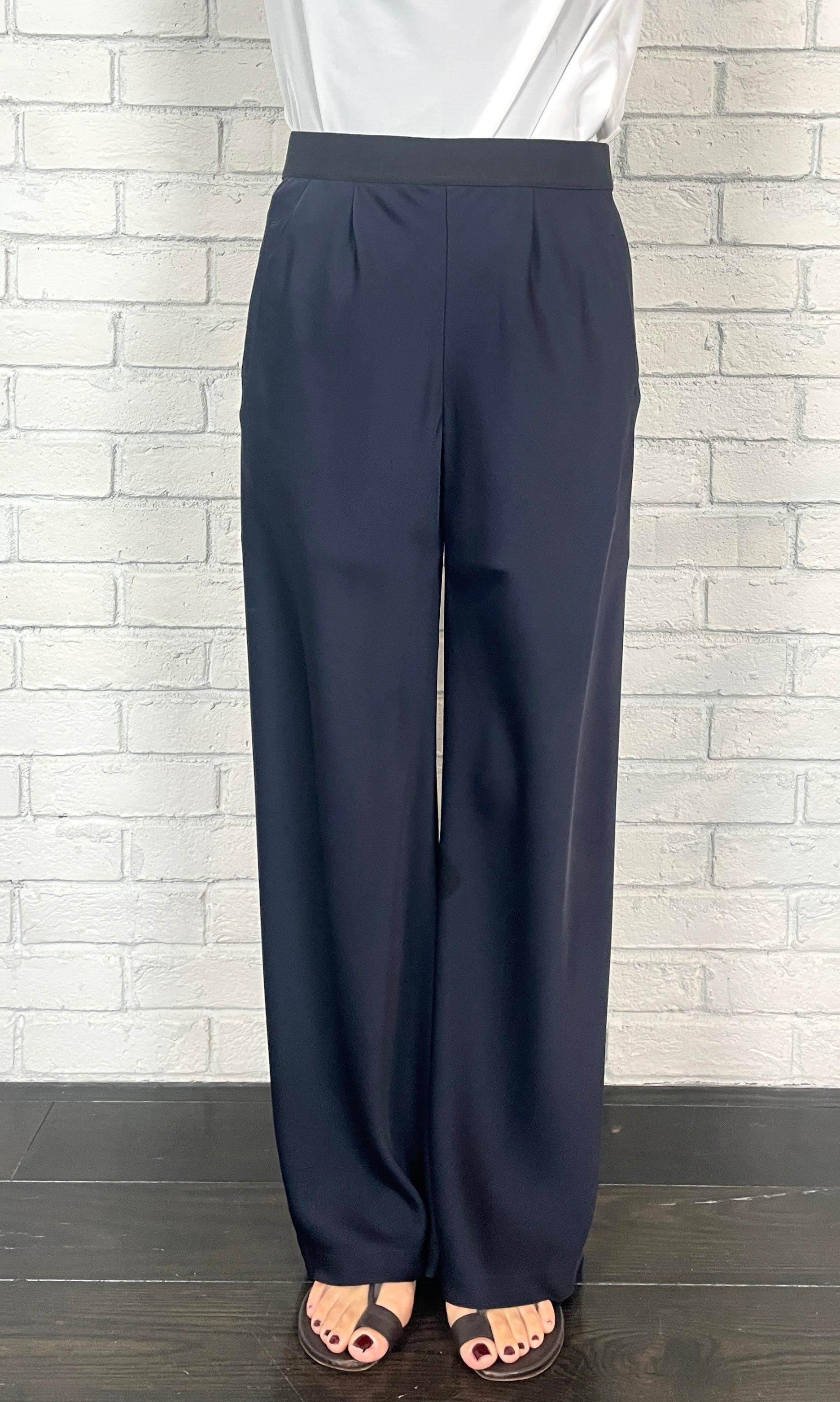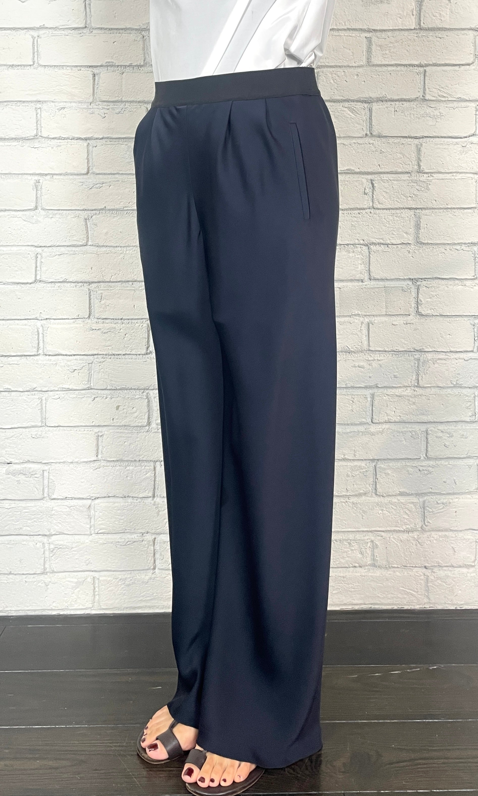 ストレッチWサテン リラクシーイージートラウザーズ <ネイビー>
