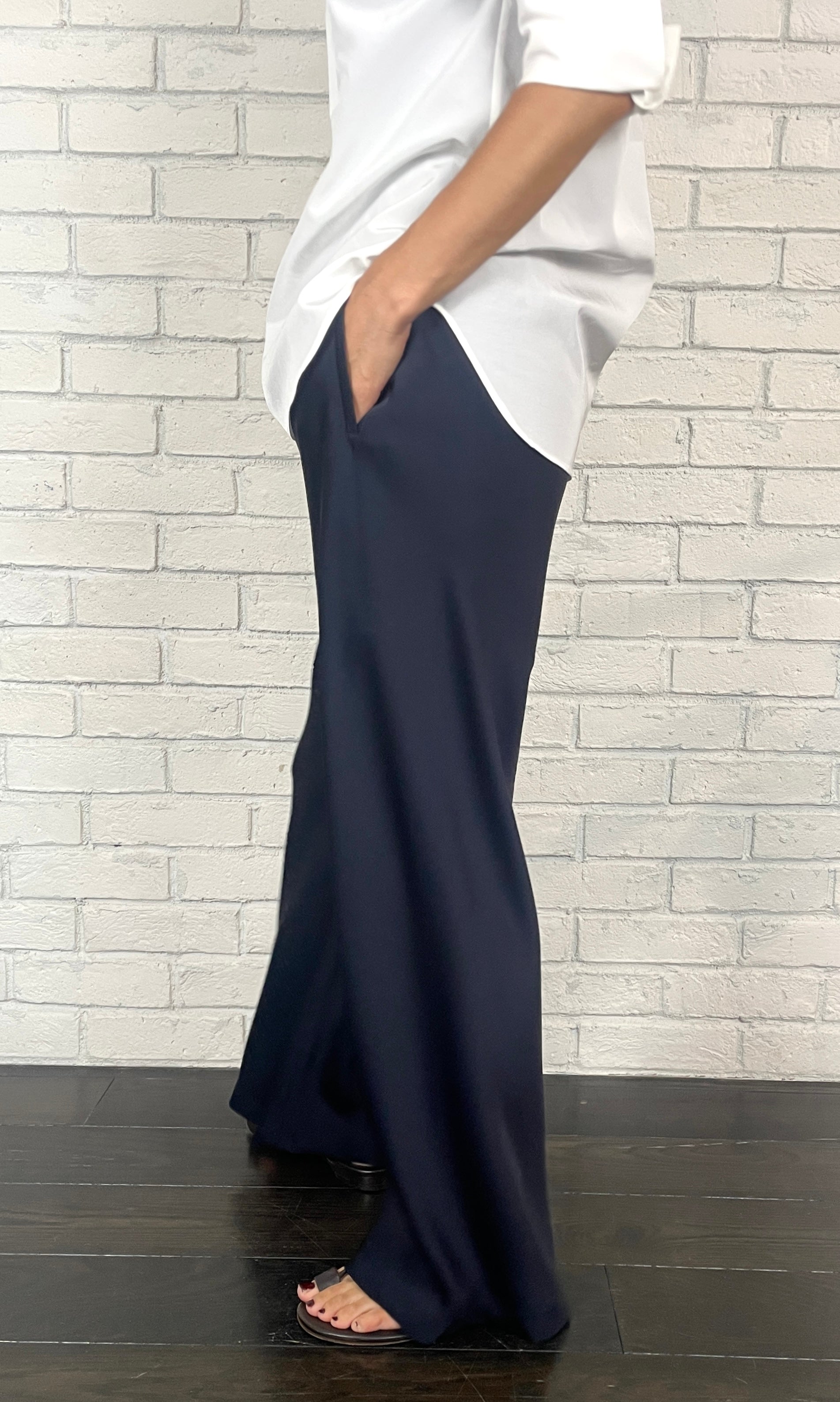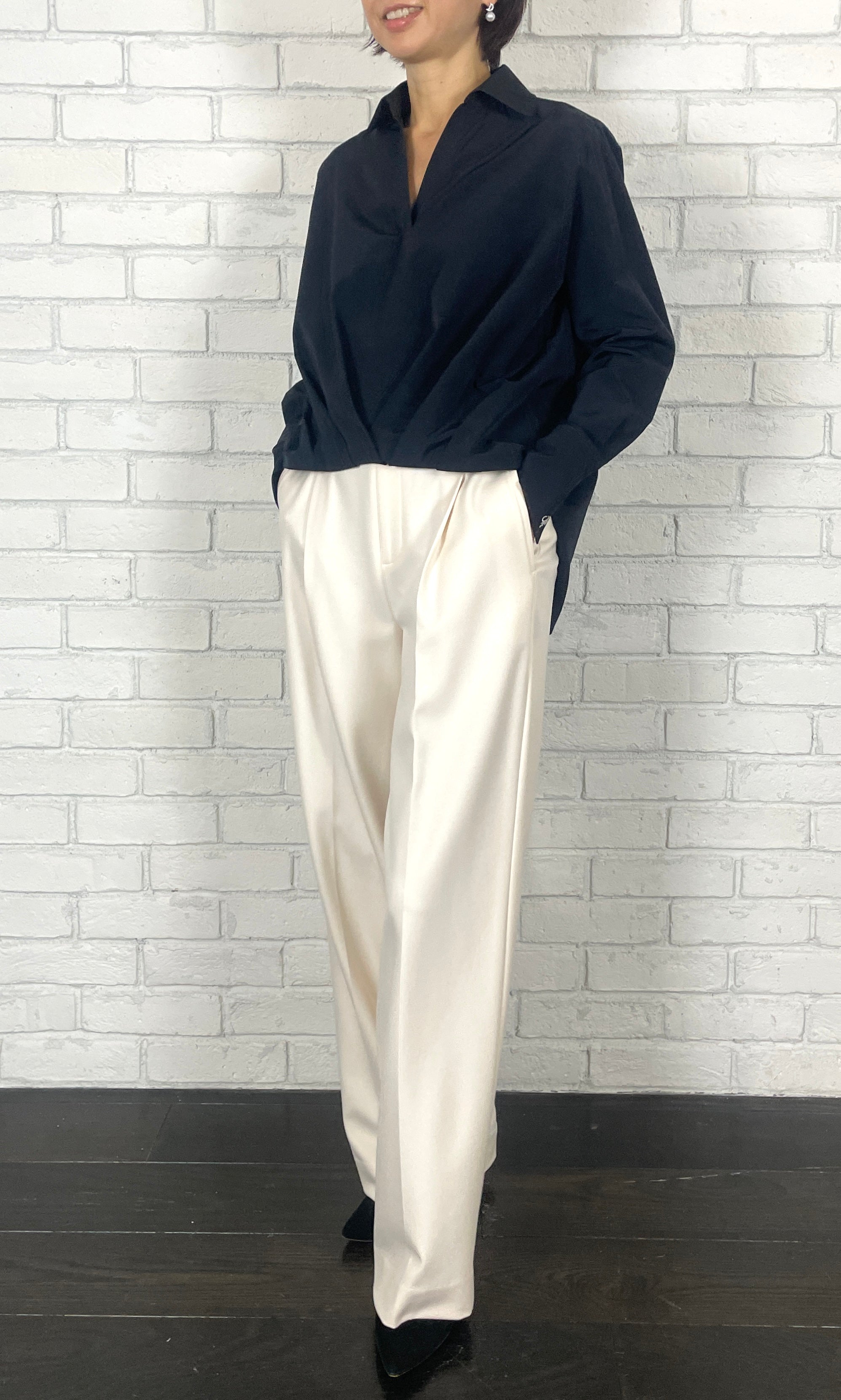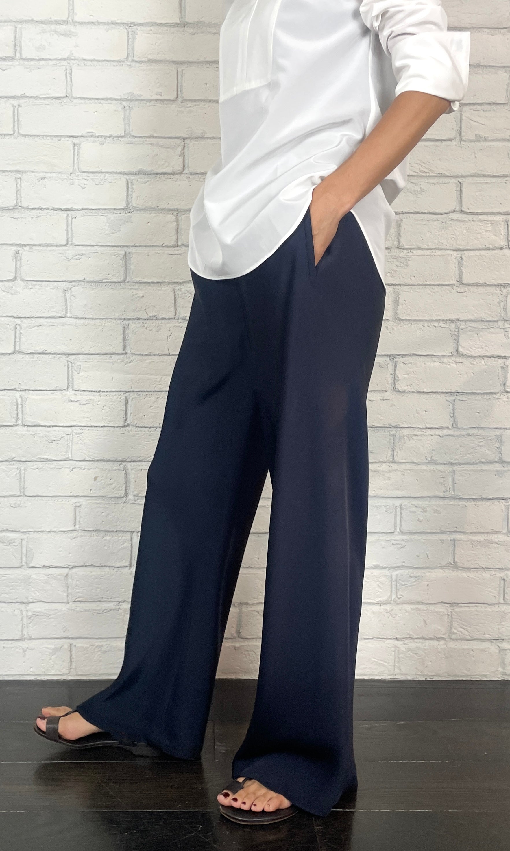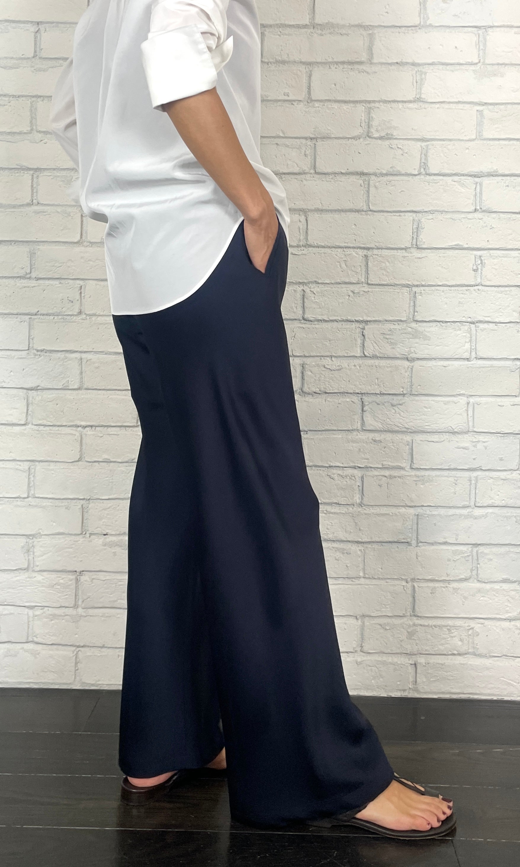 ストレッチWサテン リラクシーイージートラウザーズ <ネイビー>