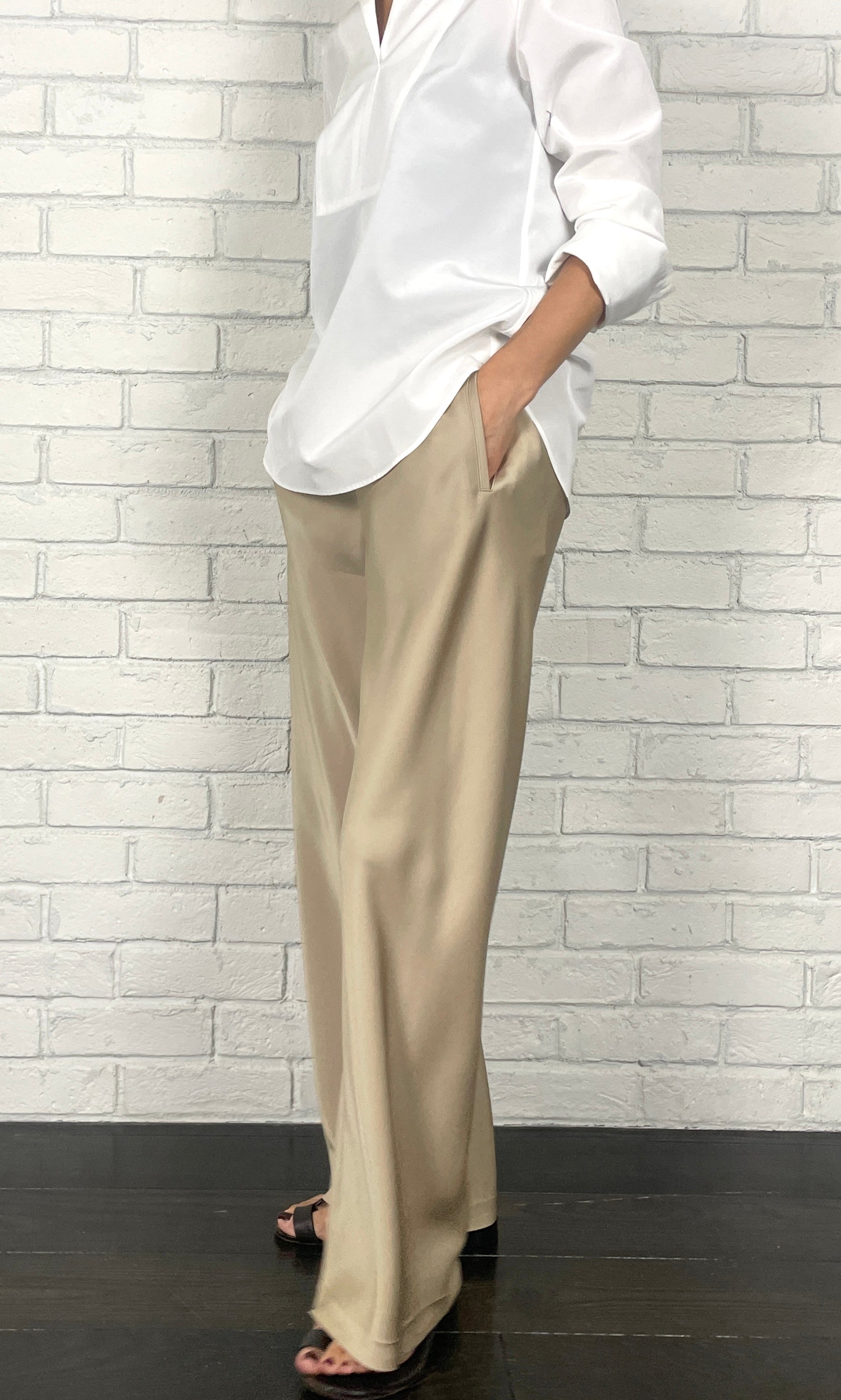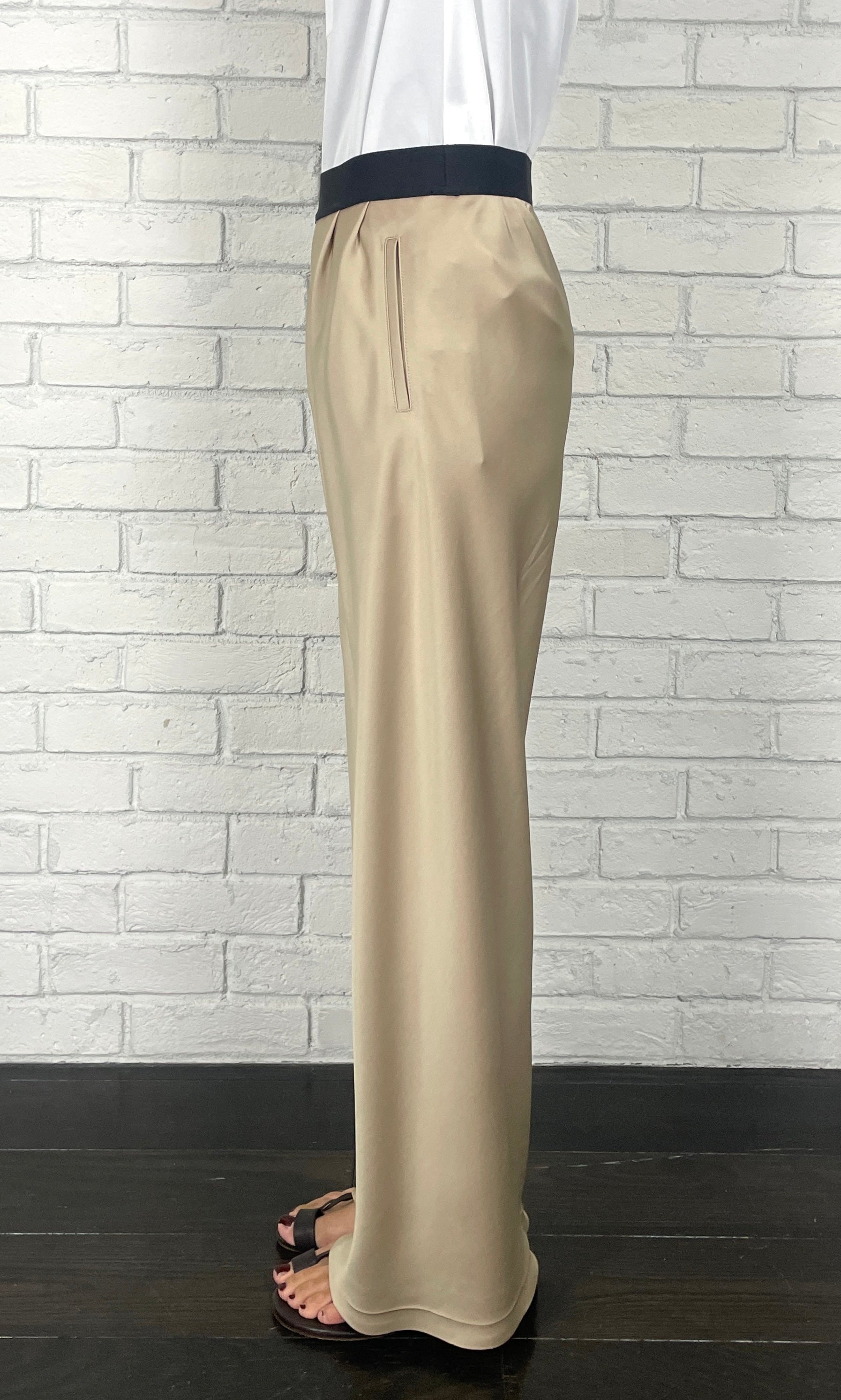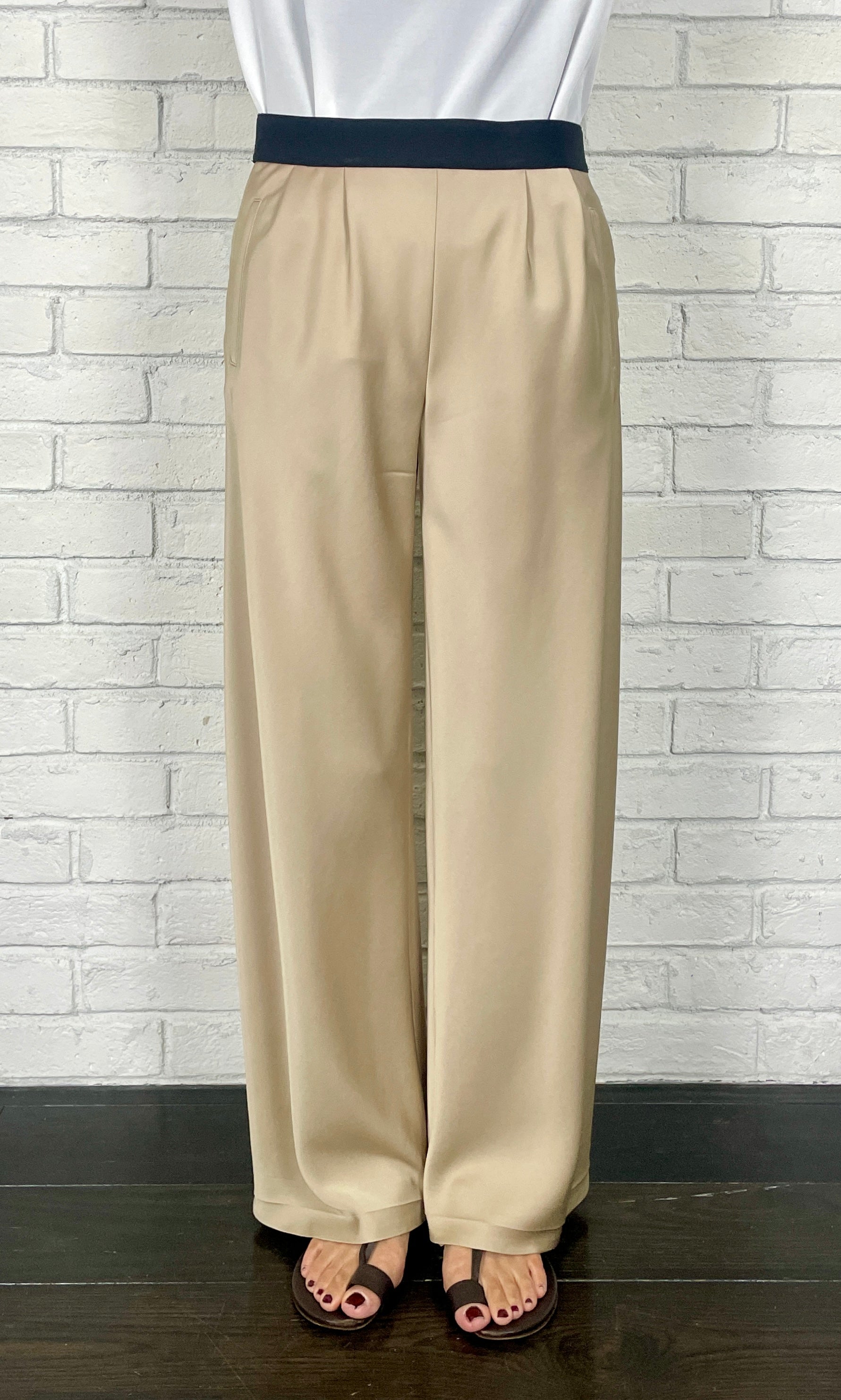 ストレッチWサテン リラクシーイージートラウザーズ <ライトベージュ>