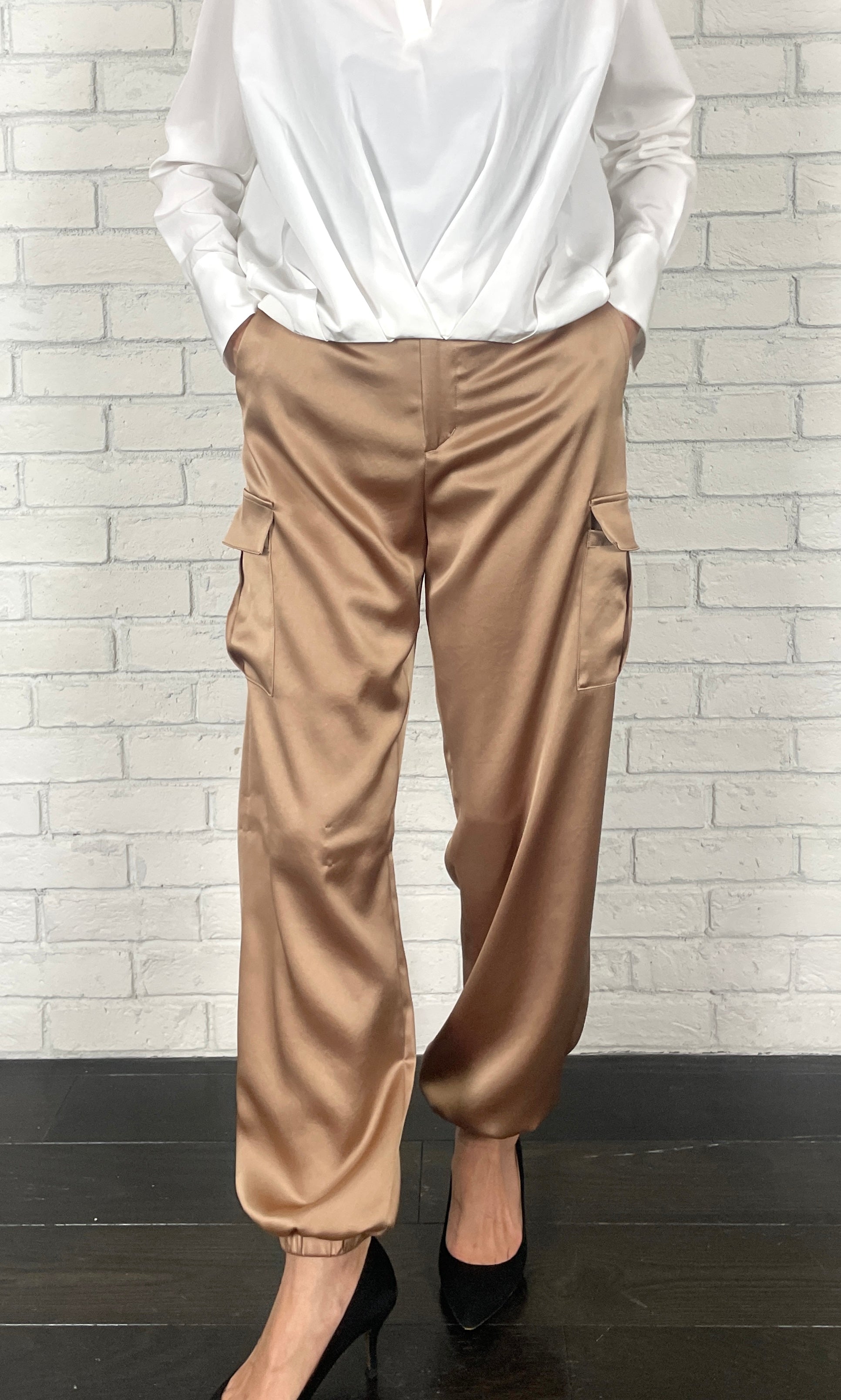 ヴィンテージサテン カーゴパンツ<ベージュ>