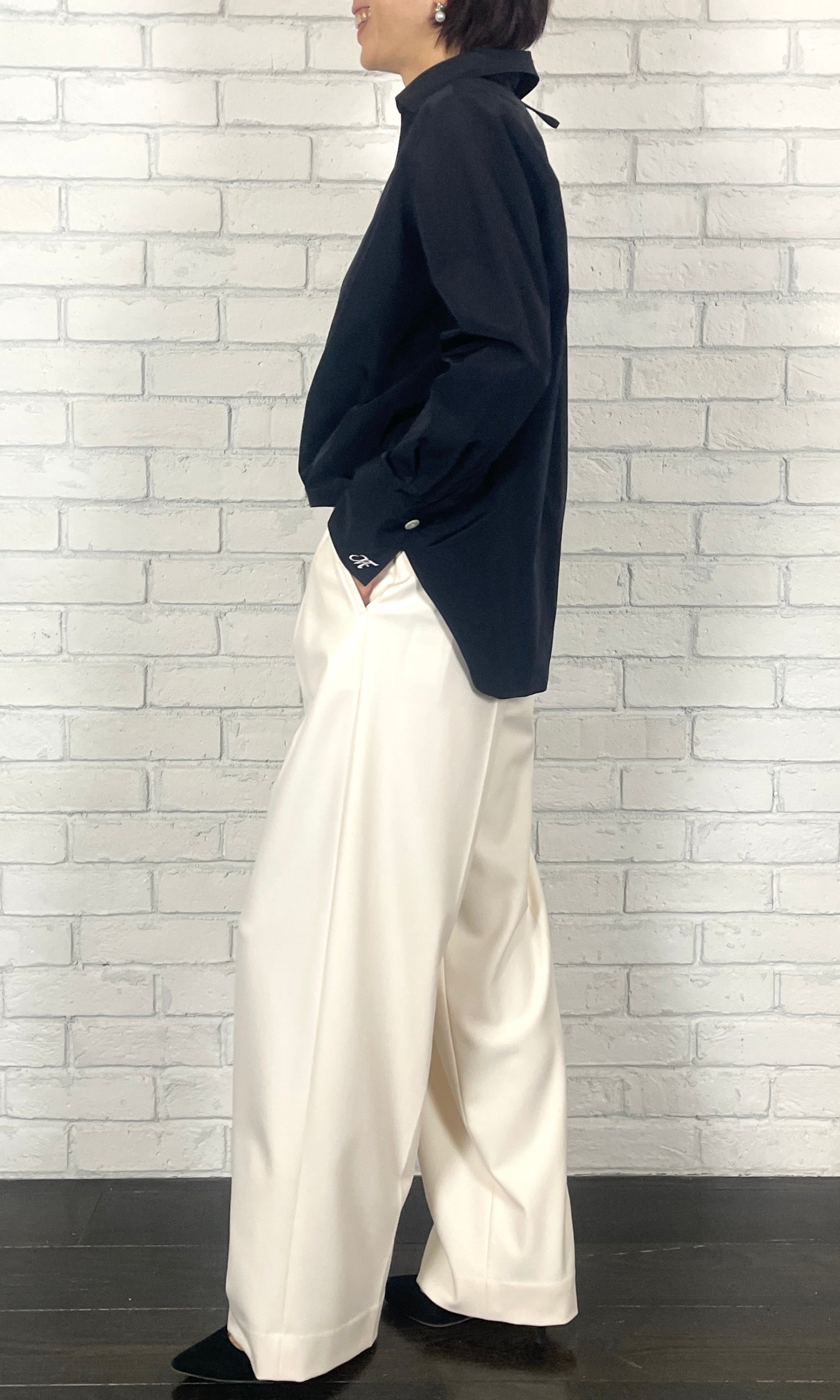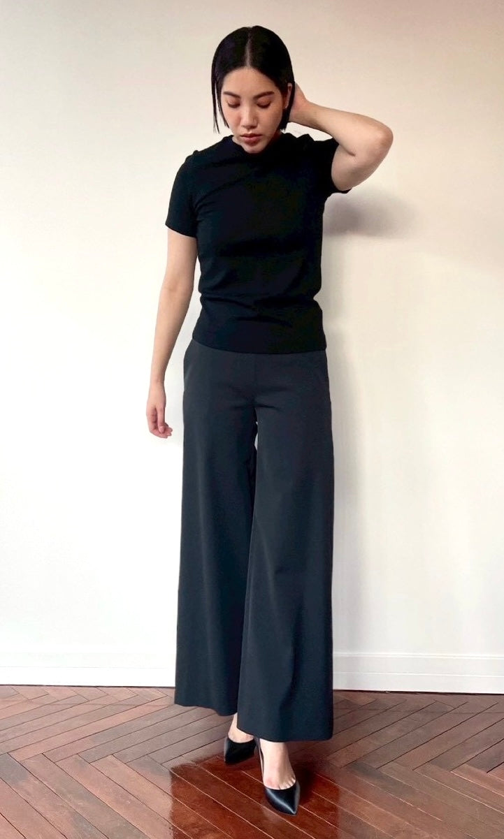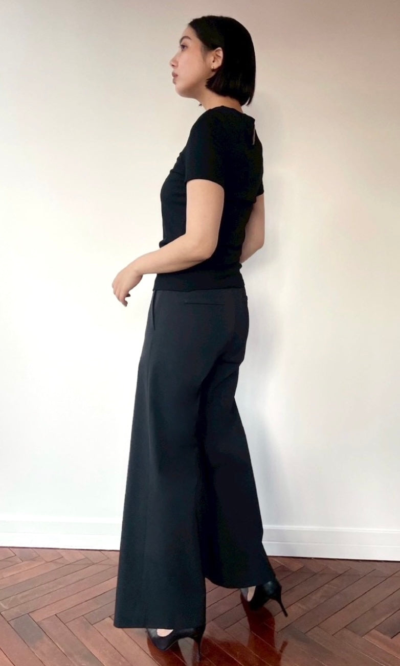 ストレッチWサテン リラクシーイージートラウザーズ <ブラック>