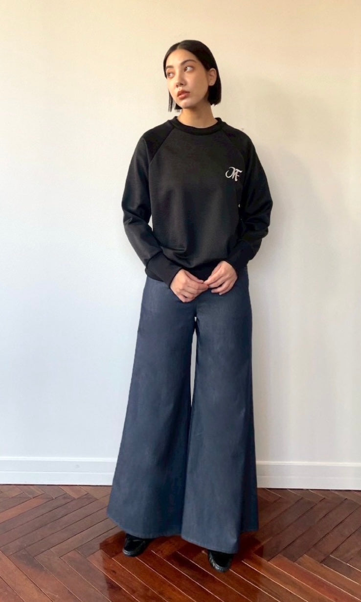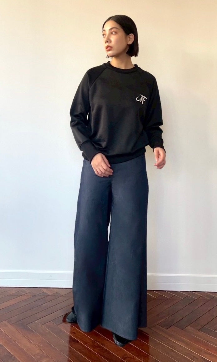 ライトデニム オーバーバギーイージートラウザーズ<ネイビーブルー>