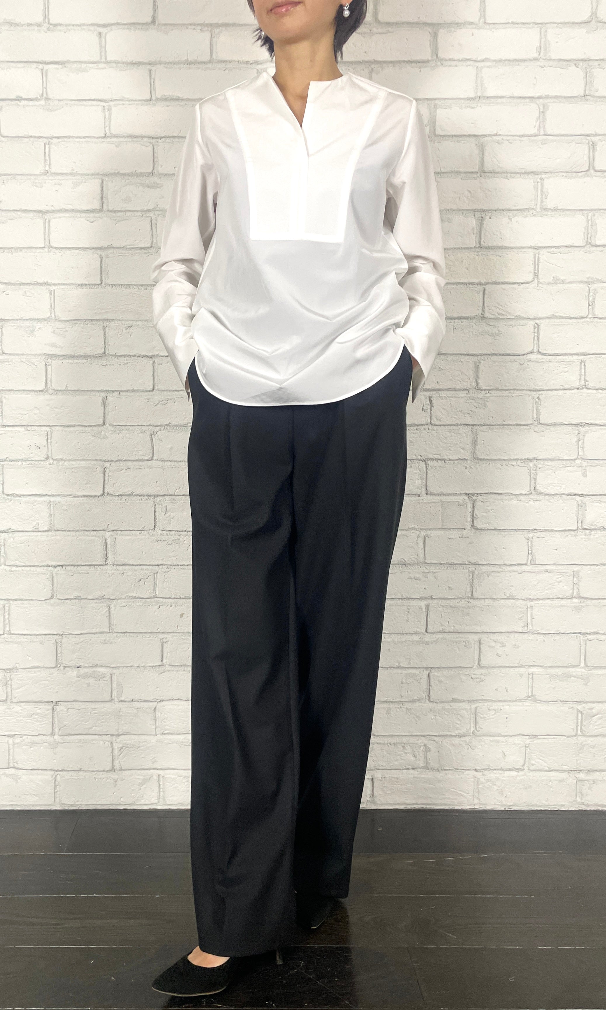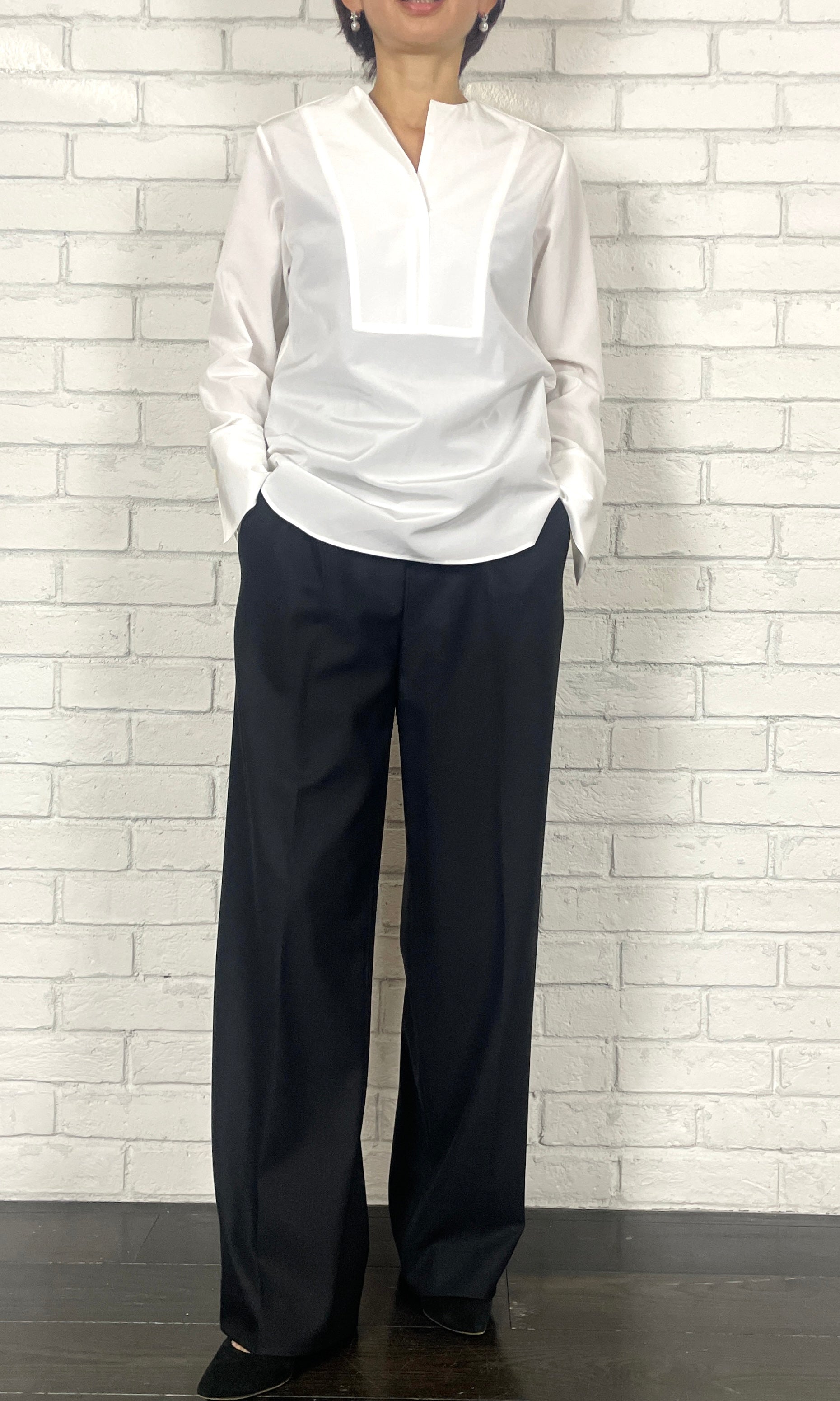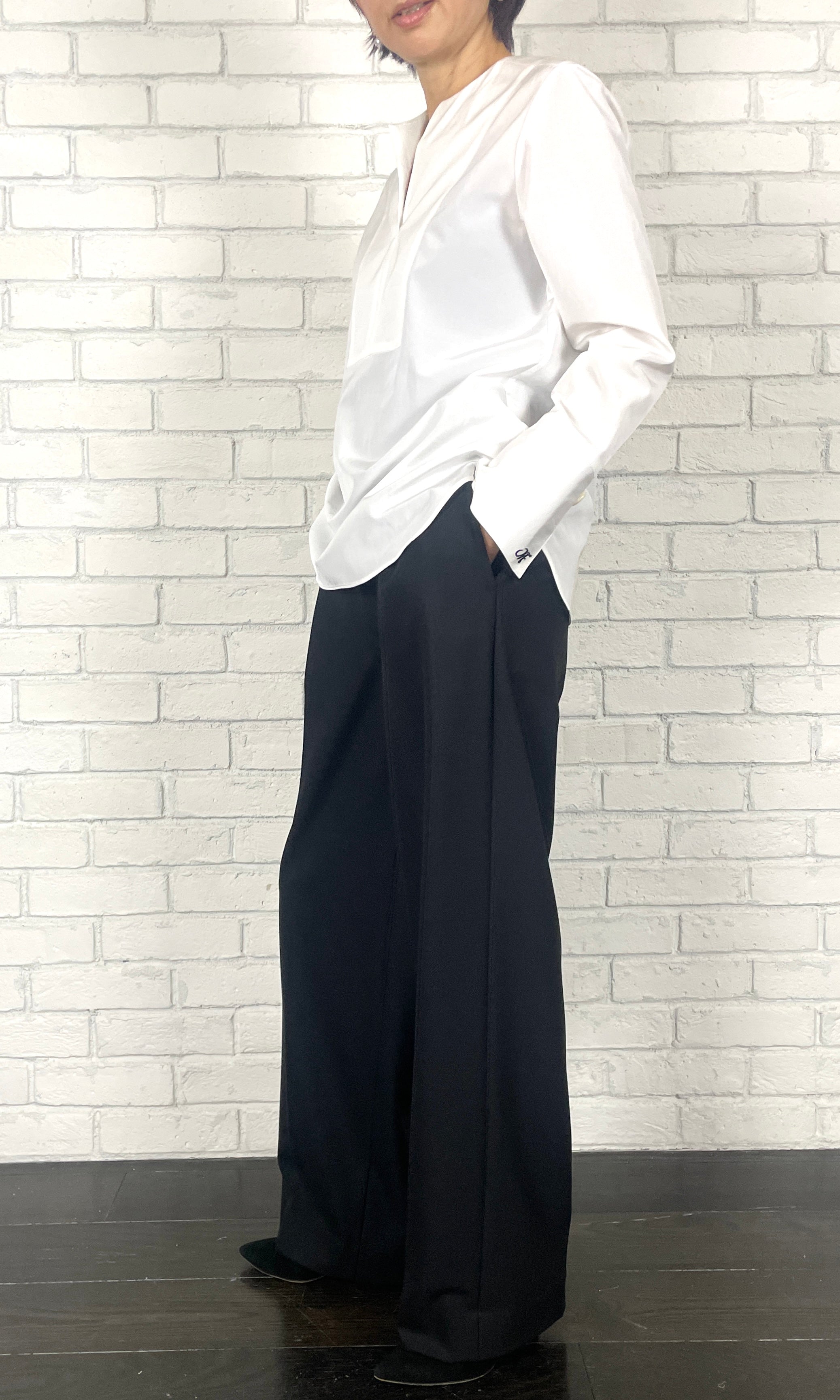 吸湿発熱効果のある糸を使用し、裏起毛を施すことで暖かさと肌触りの良さを追求した2WAYストレッチ素材。毛羽が少なくぴロングが起きにくい特殊な糸を使用しています。シルエットはワンタックワイド。エレガントにもスポーティーにも着こなせるイージートラウザーズです。