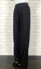 ウォームツイル裏起毛 ワンタックワイドイージートラウザーズ<ブラック>