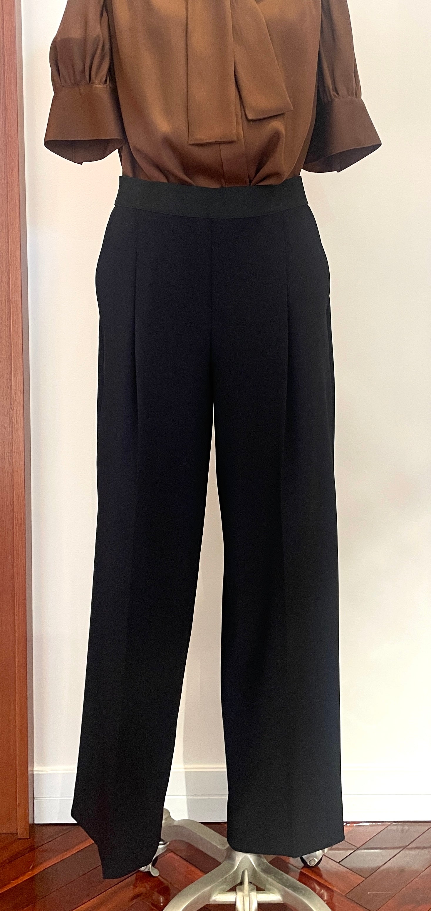 トリアセボディシェル ワンタックワイドイージートラウザーズ<ブラック>