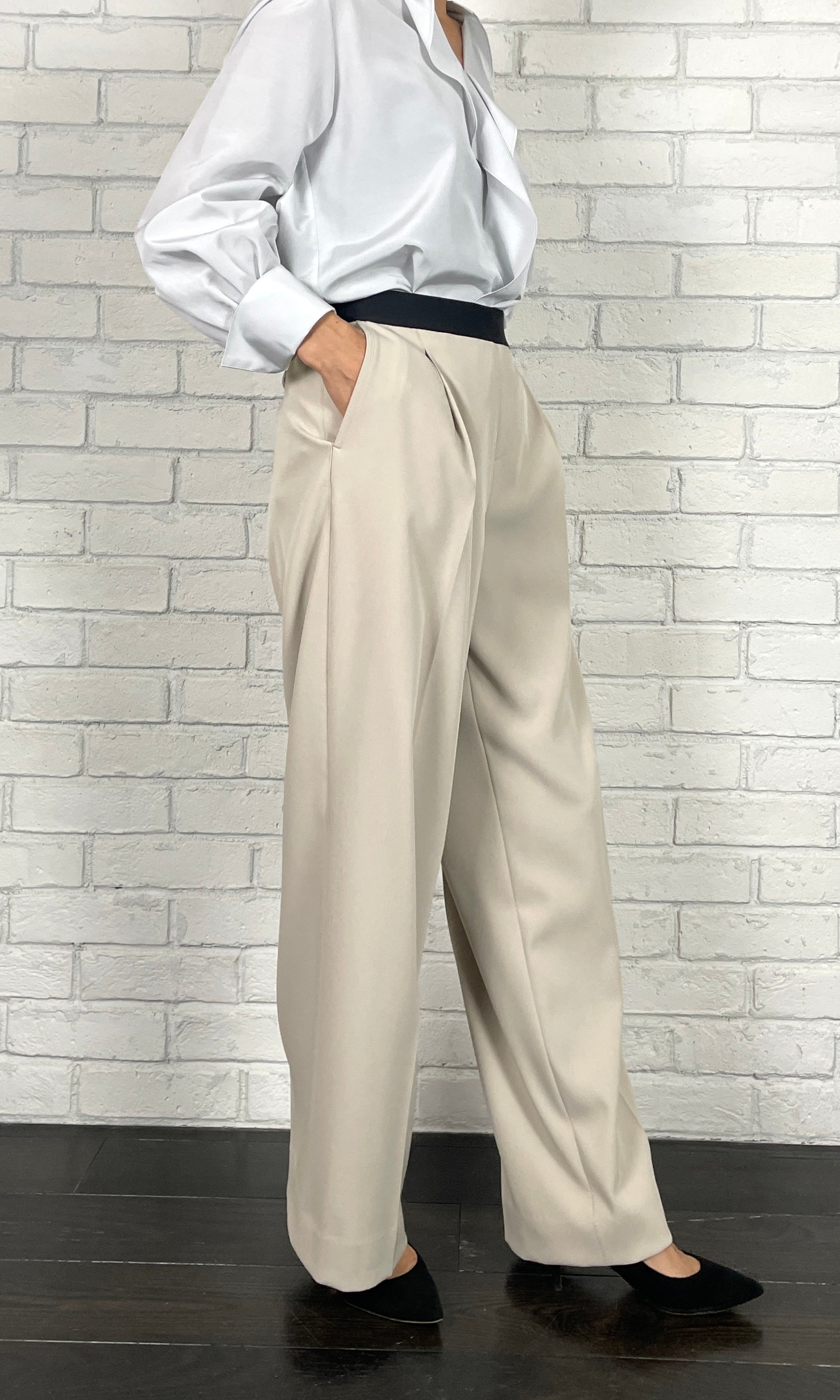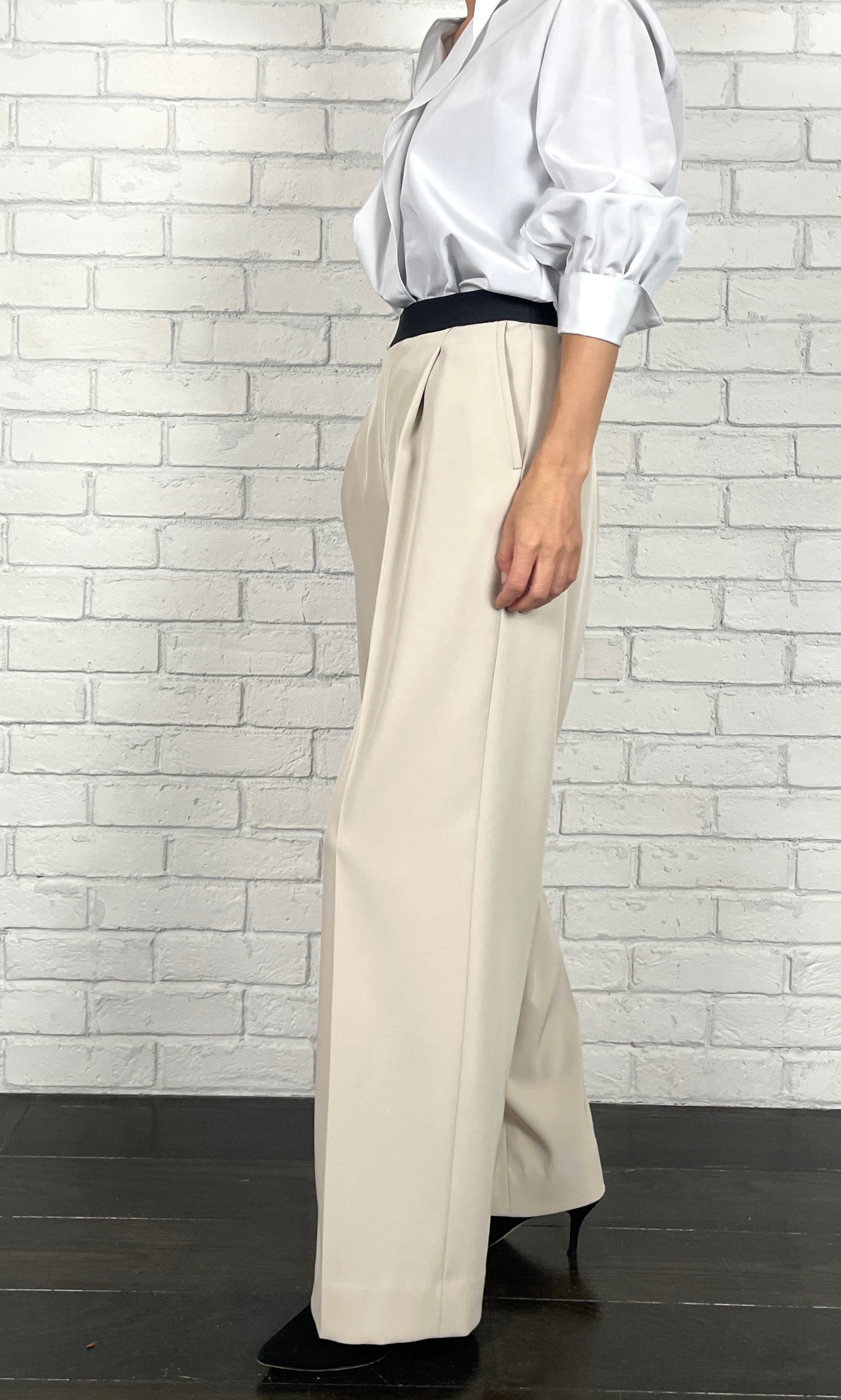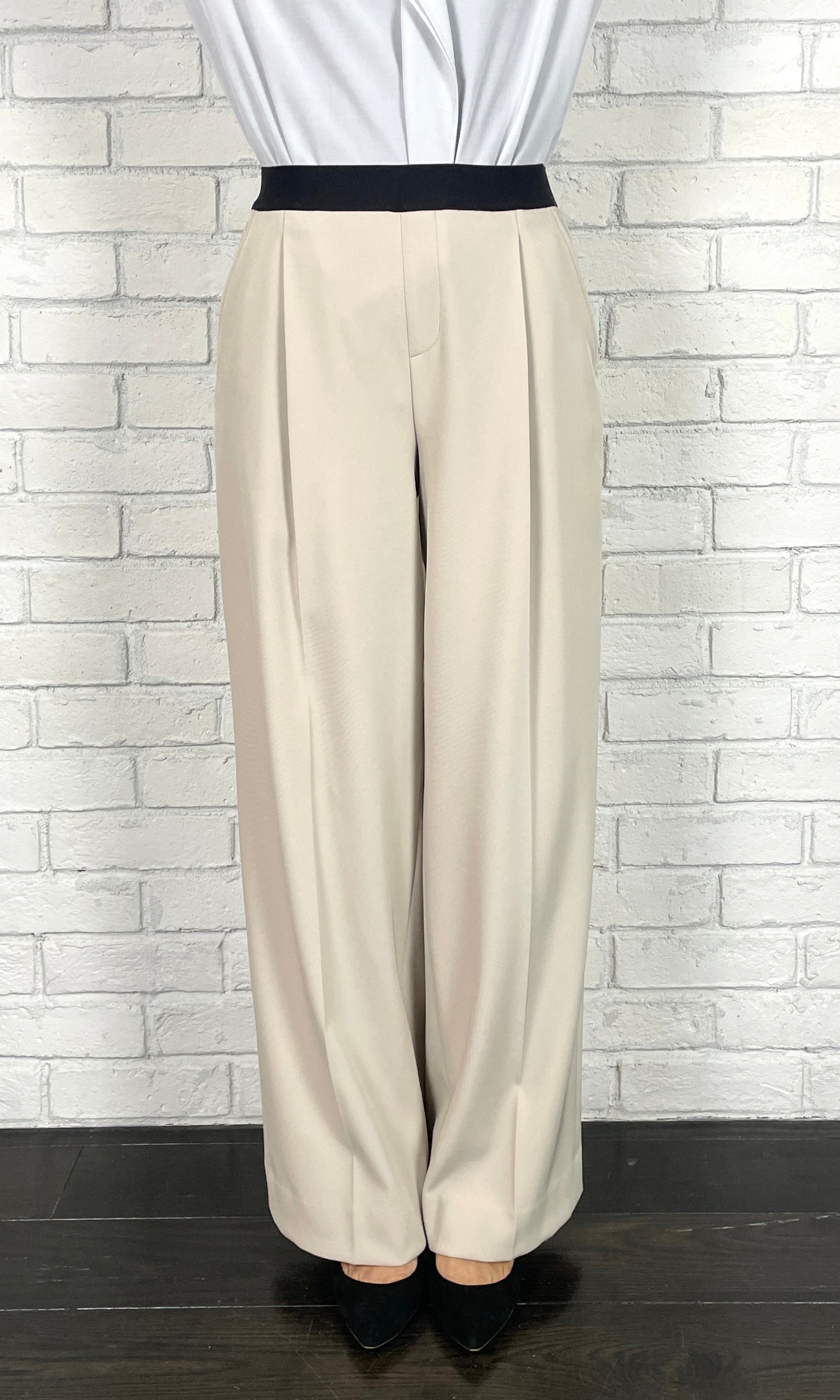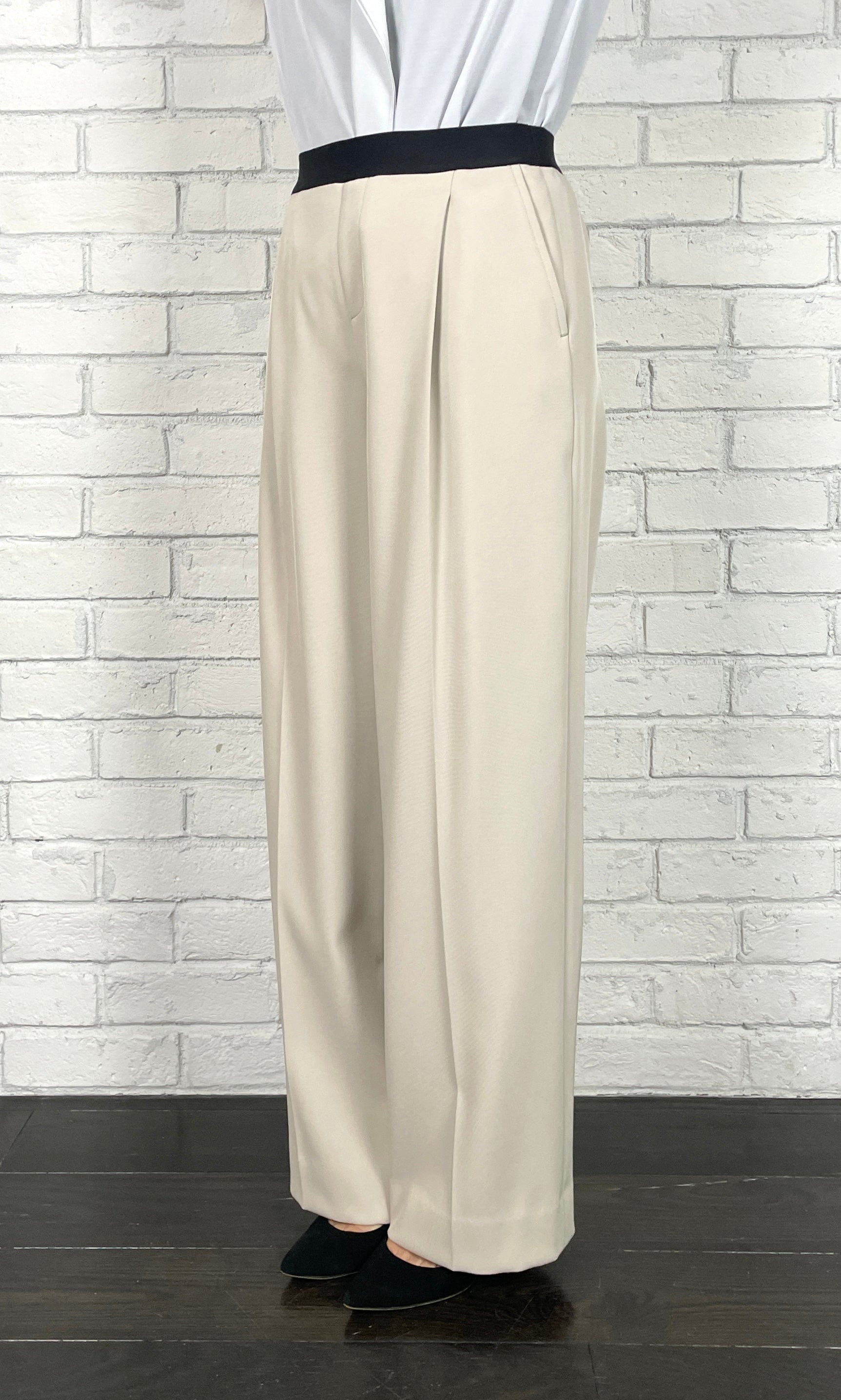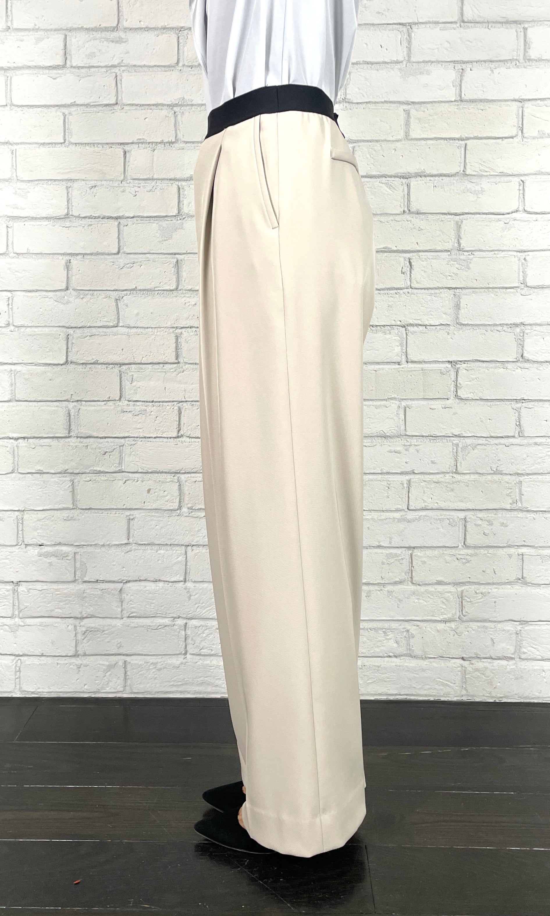 トリアセボディシェル 裏起毛ワンタックワイドイージートラウザーズ<ベージュ>