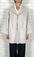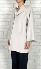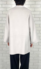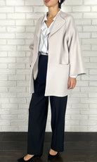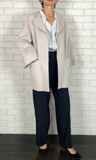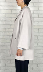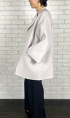 ゆったりとしたサイズ感で、インナーのボリュームを気にせずに着ていただけるリバーコート。かしこまりすぎないラペルのデザインは、お顔周りに華やかさをプラスしてくれます。
